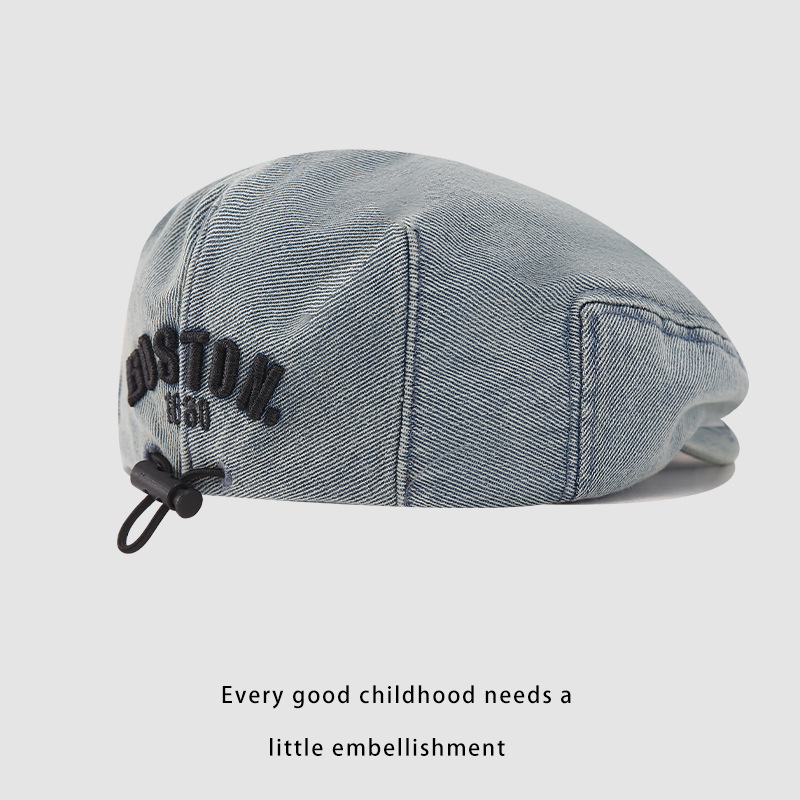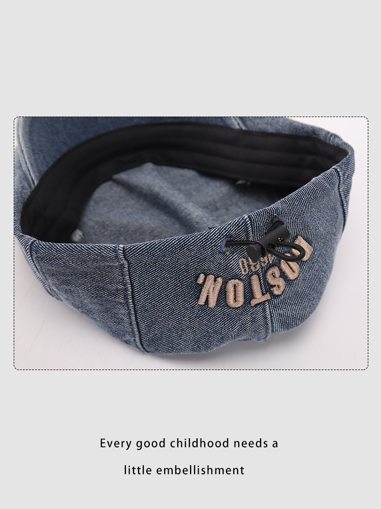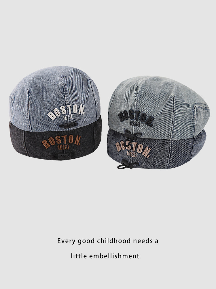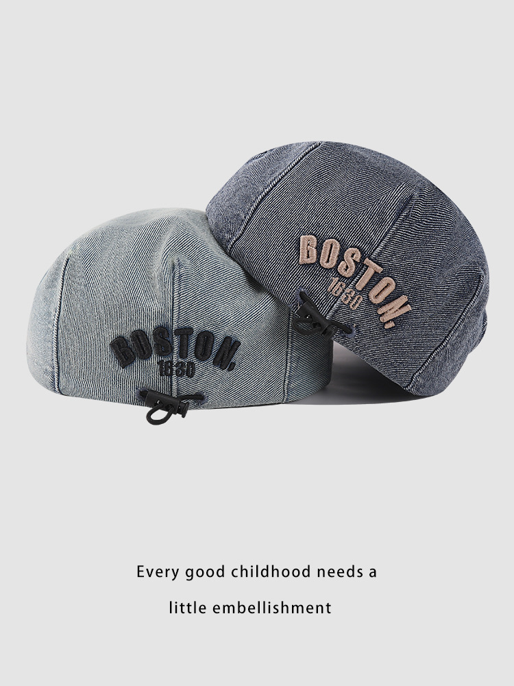한국판 BOSTON 편지 자수 어린이 앞으로 모자 새 봄과 여름 세탁 데님 아기 베레모 조수스토어 가기