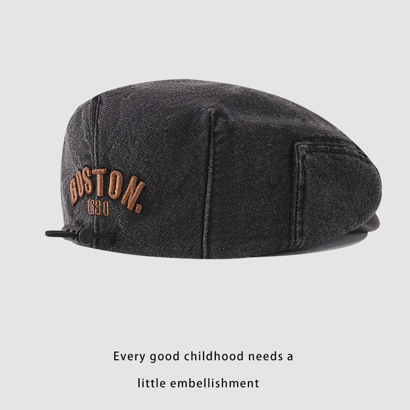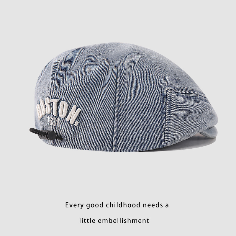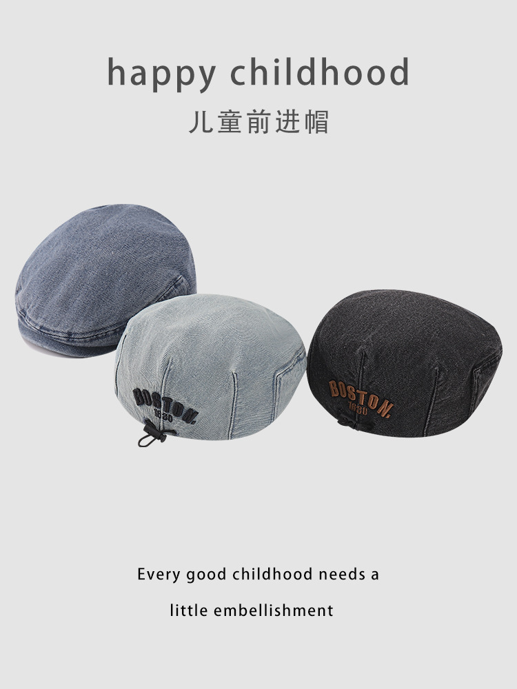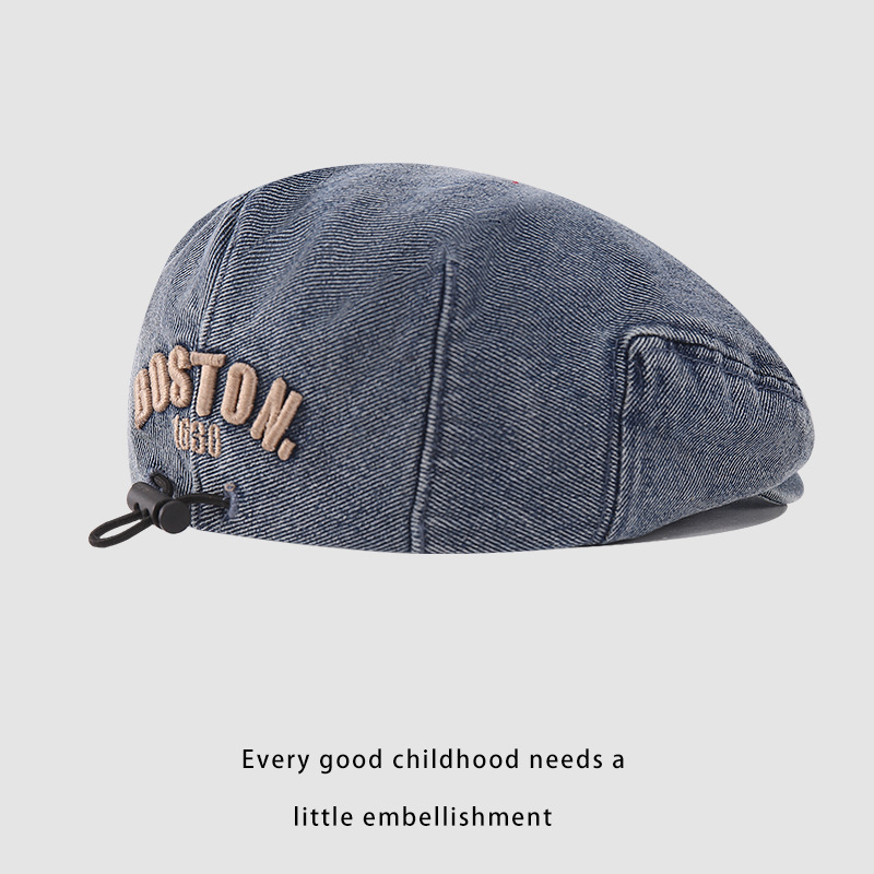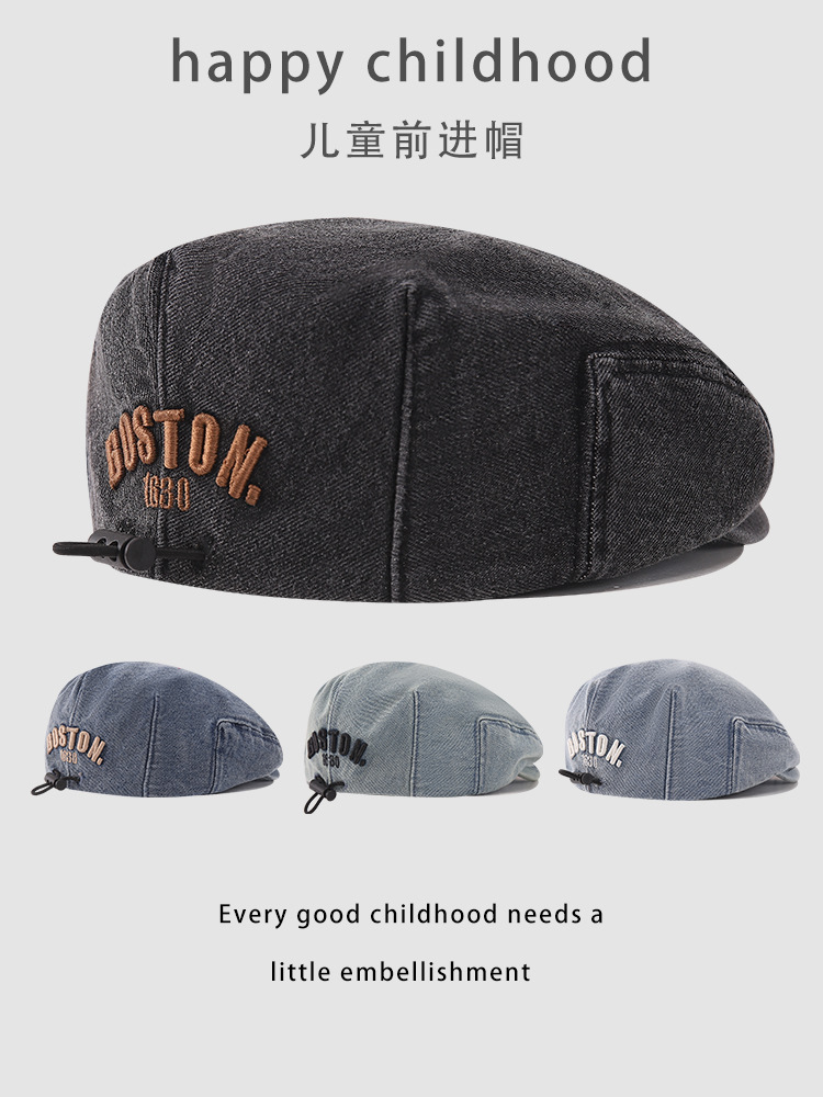 한국판 BOSTON 편지 자수 어린이 앞으로 모자 새 봄과 여름 세탁 데님 아기 베레모 조수스토어 가기