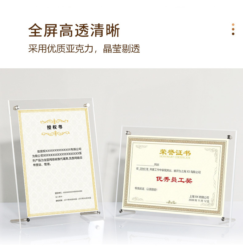 국경 아크릴 테이블 사진 프레임 A4 인증 인증서 메달 수상 프레임 6 인치 액자 비즈니스 라이센스 프레임 도매스토어 가기