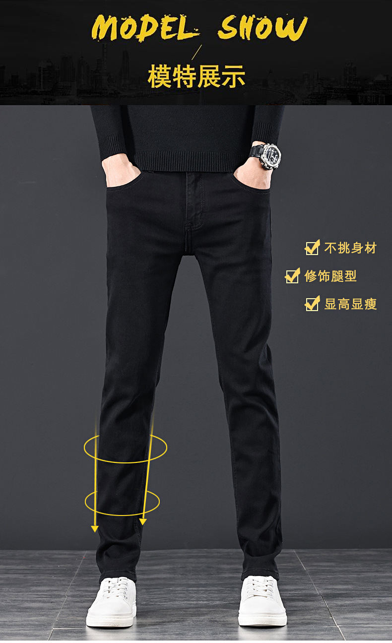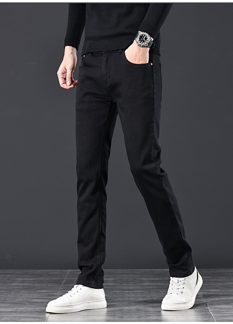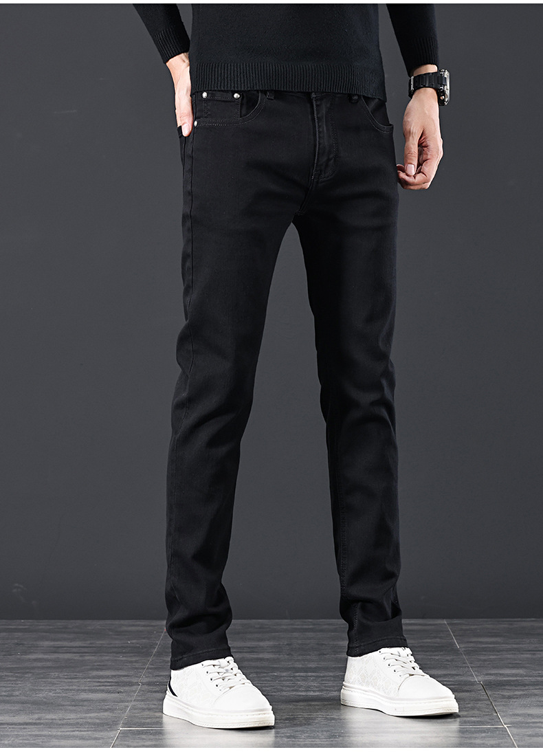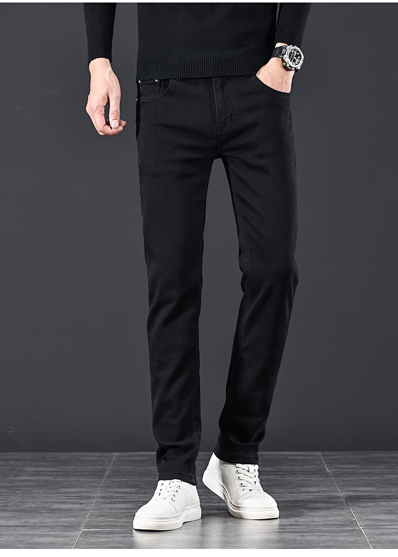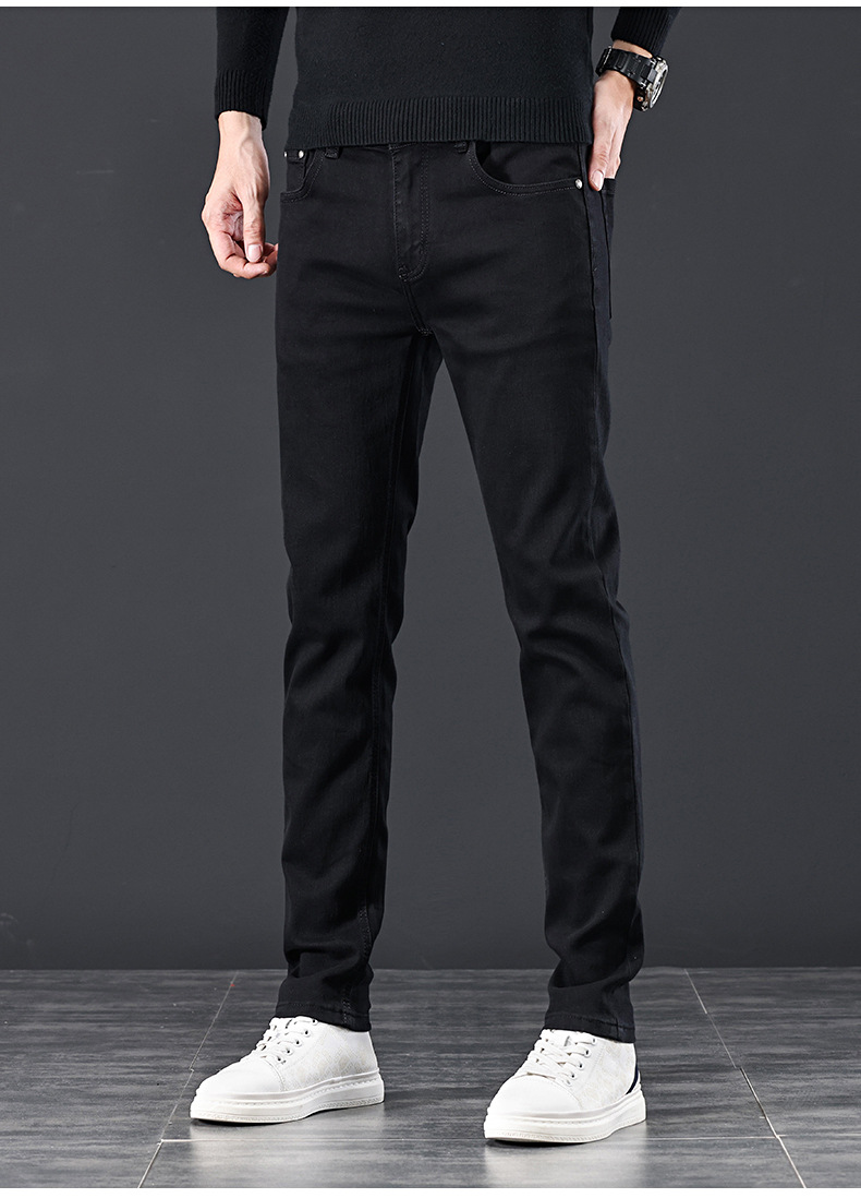 퓨어 블랙 남성 바지 청바지 하이 엔드 패션 스트레치 스트레이트 바지 남자 올 매치 슬림 핏 슬리밍 캐주얼 바지스토어 가기