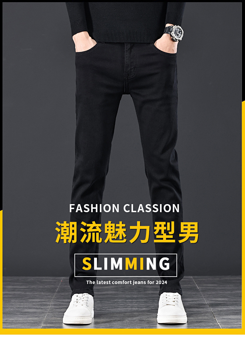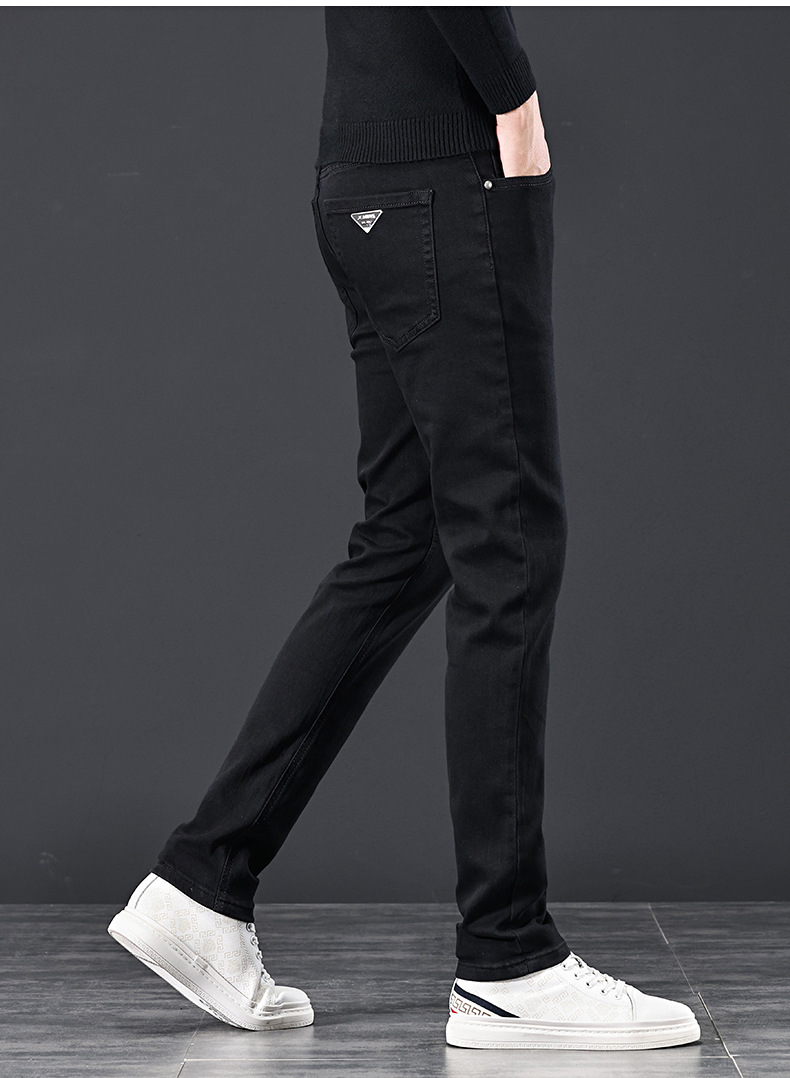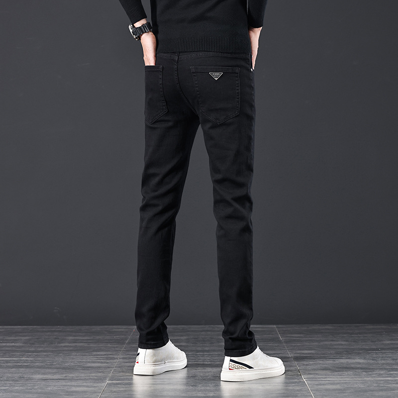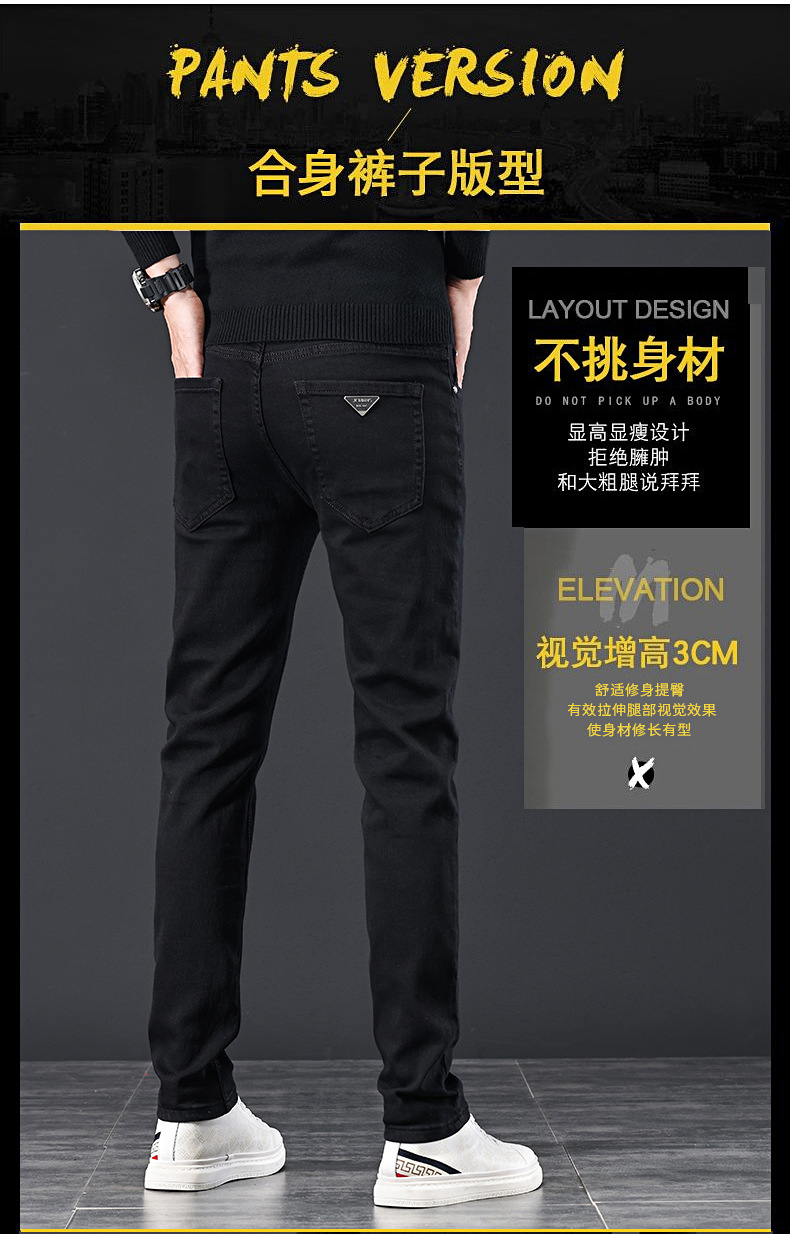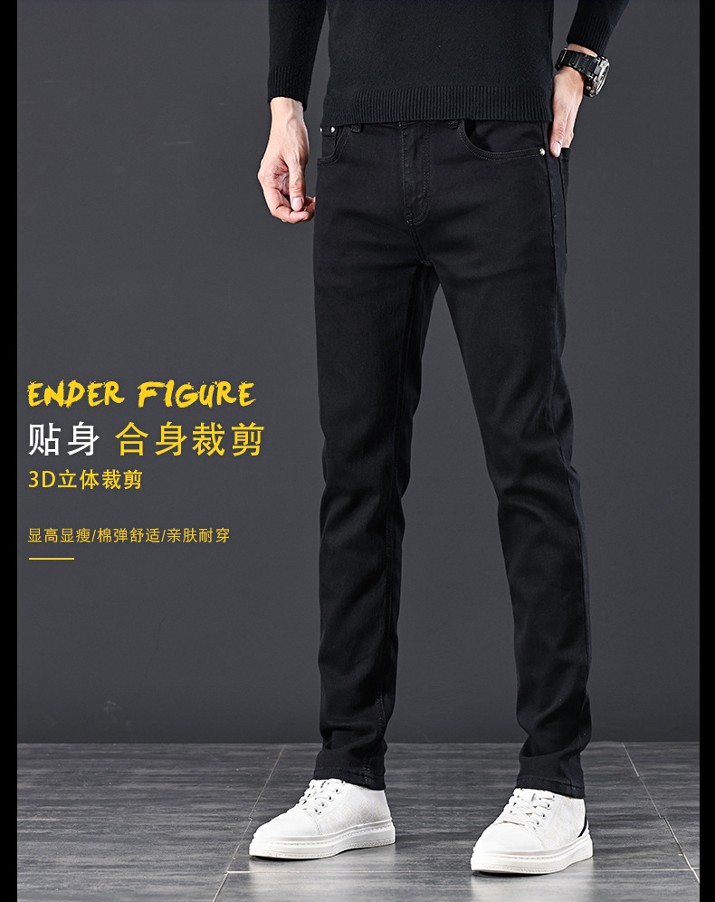퓨어 블랙 남성 바지 청바지 하이 엔드 패션 스트레치 스트레이트 바지 남자 올 매치 슬림 핏 슬리밍 캐주얼 바지스토어 가기