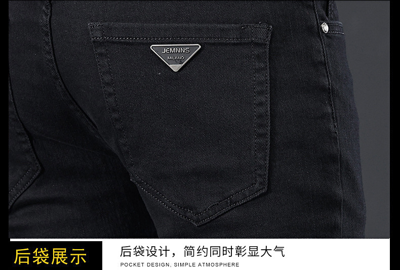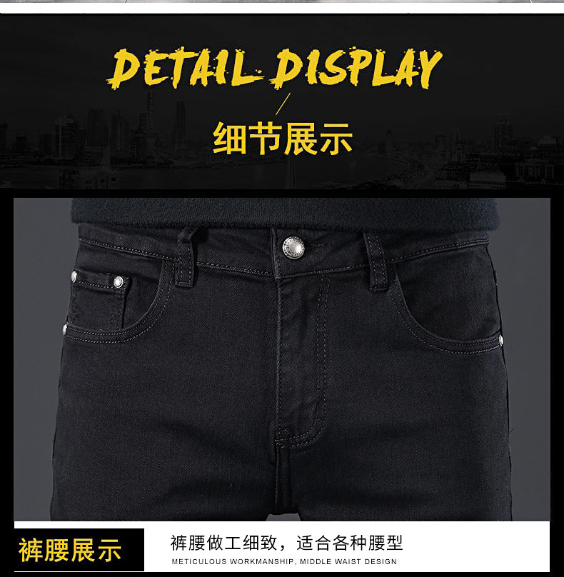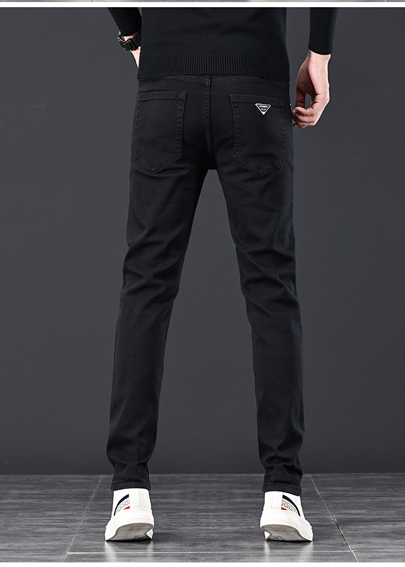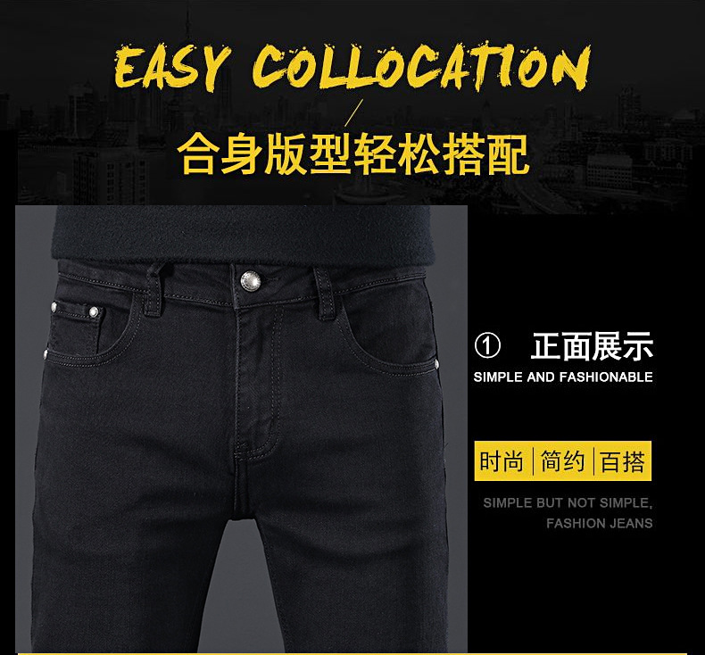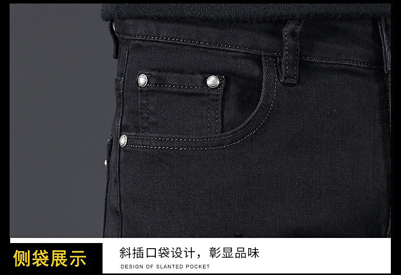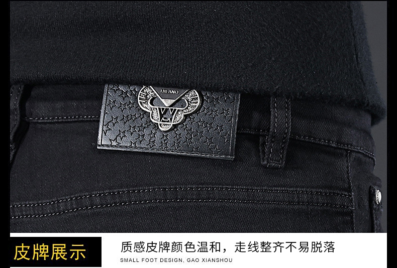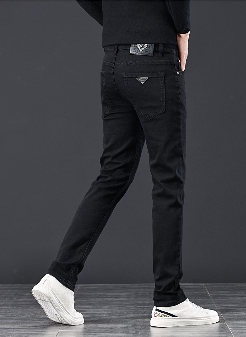 퓨어 블랙 남성 바지 청바지 하이 엔드 패션 스트레치 스트레이트 바지 남자 올 매치 슬림 핏 슬리밍 캐주얼 바지스토어 가기