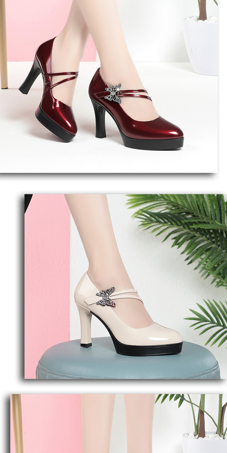 여성 신발 부드러운 가죽 부드러운 바닥 하이힐 유행 우아한 플랫폼 춤추는 cheongsam 신발 중년 및 노인 어머니 여성 신발스토어 가기