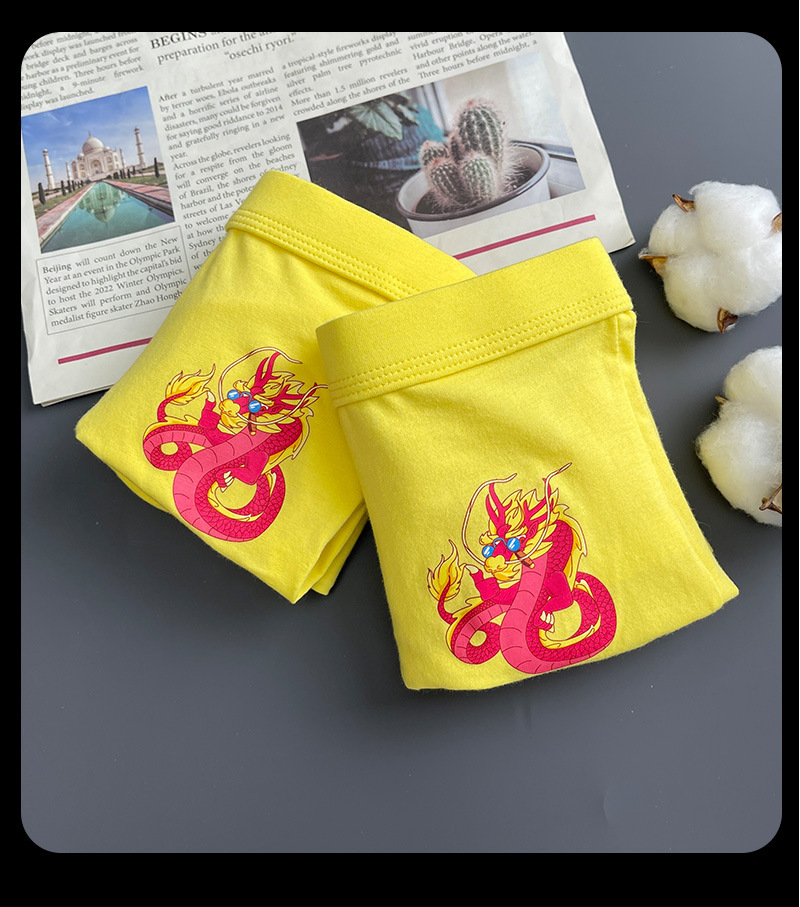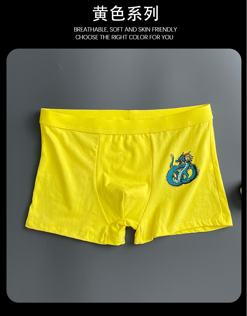 남자 속옷 노란색 순면 드래곤 년 용 반바지 순수한면 복서 반바지 소년 4 코너 재미있는 출생 년 남성스토어 가기