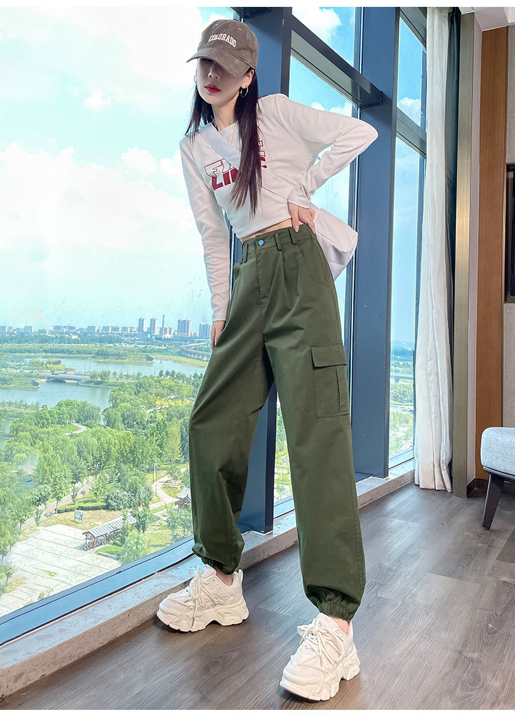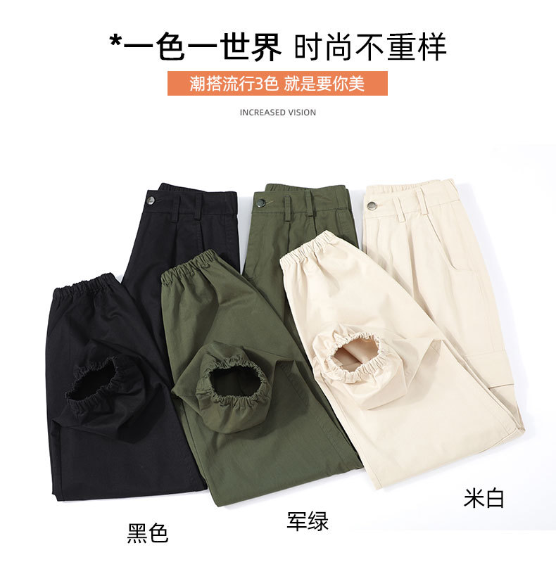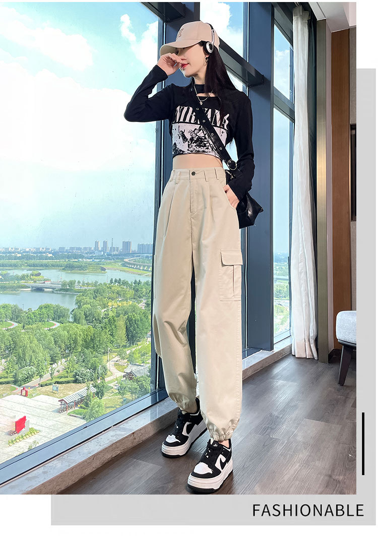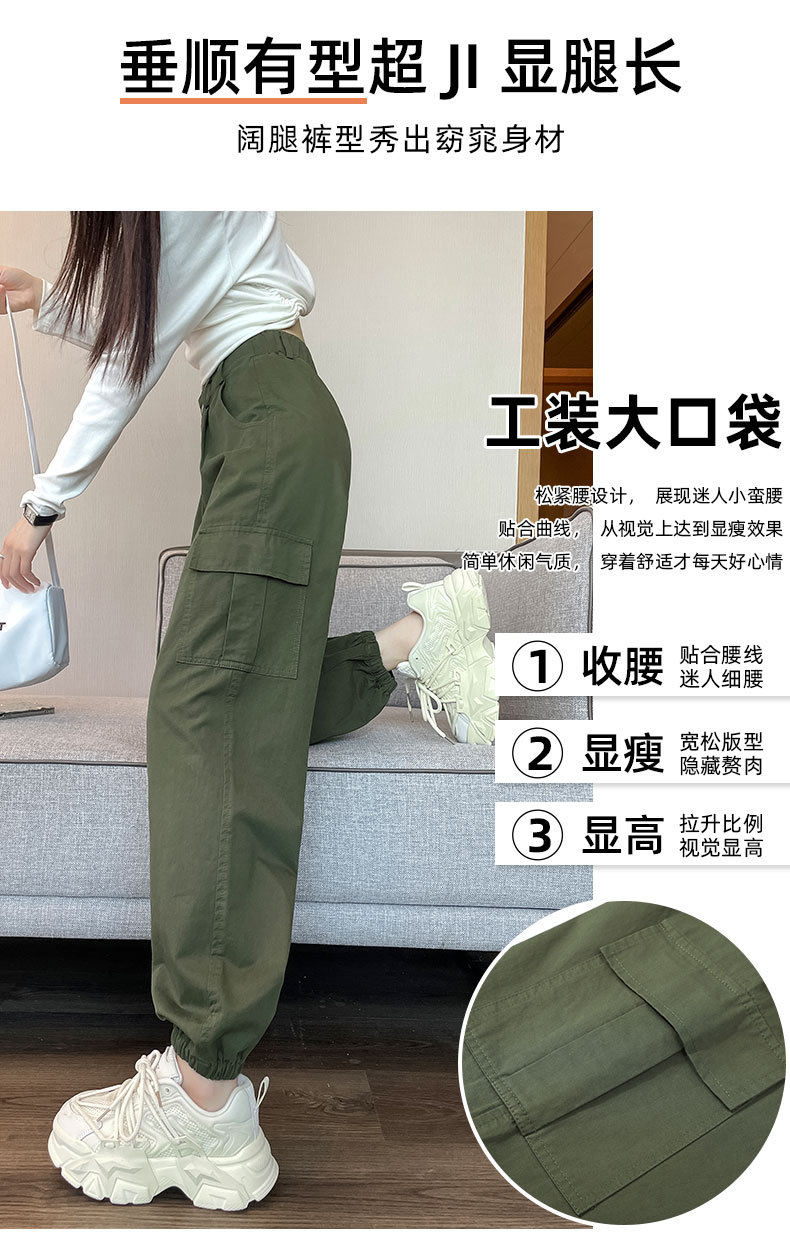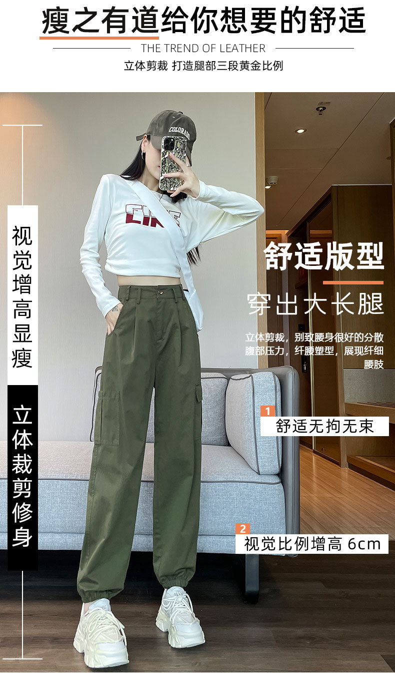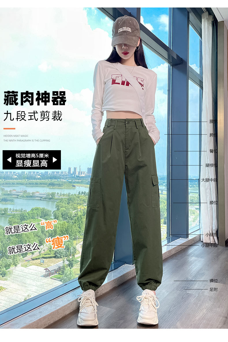 올 코튼 아메리칸 바지 여성 봄과 가을 2024 뉴 하이 허리 야외 등산 발목 묶인 스포츠 바지 E650스토어 가기
