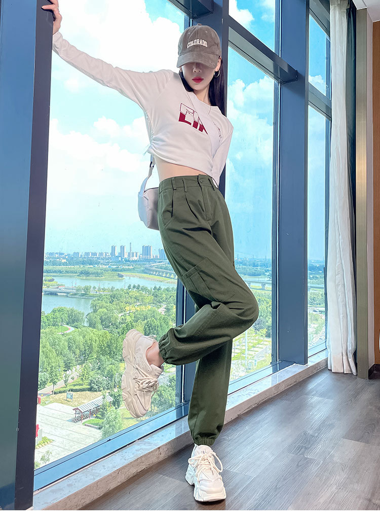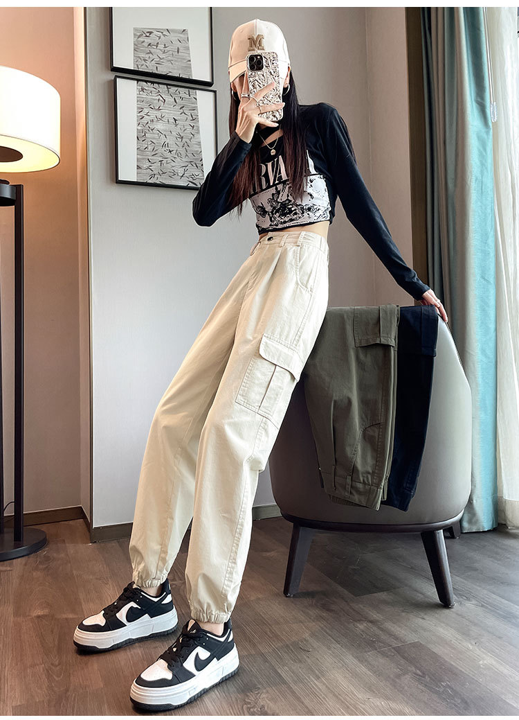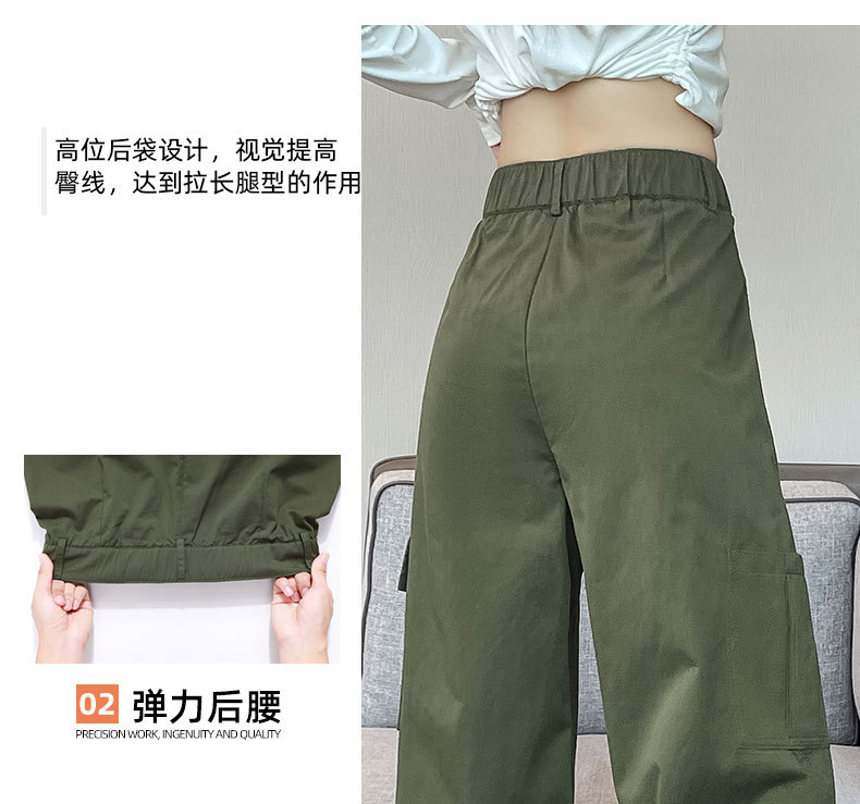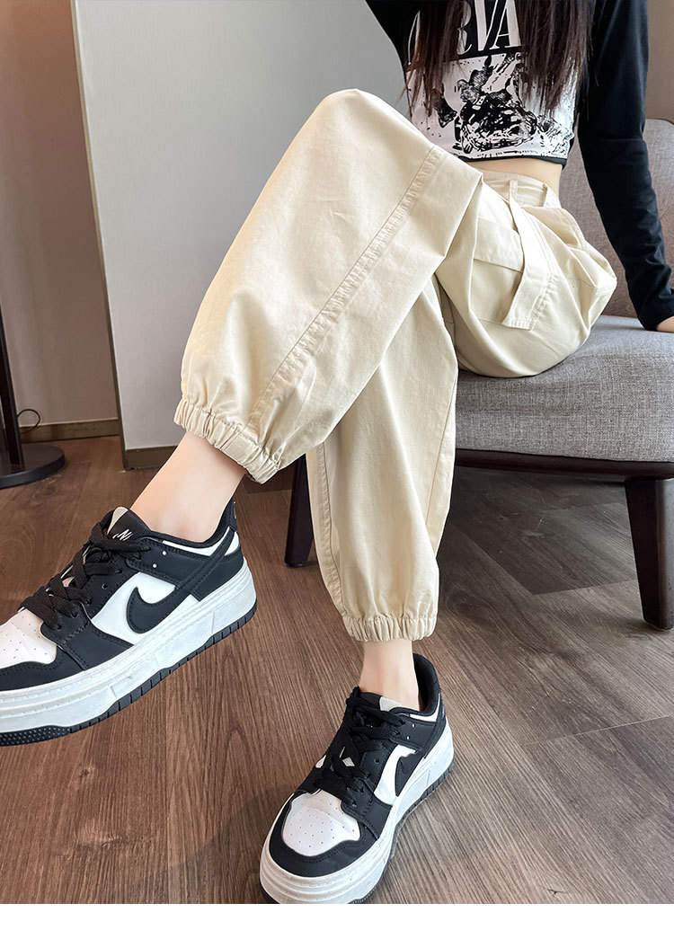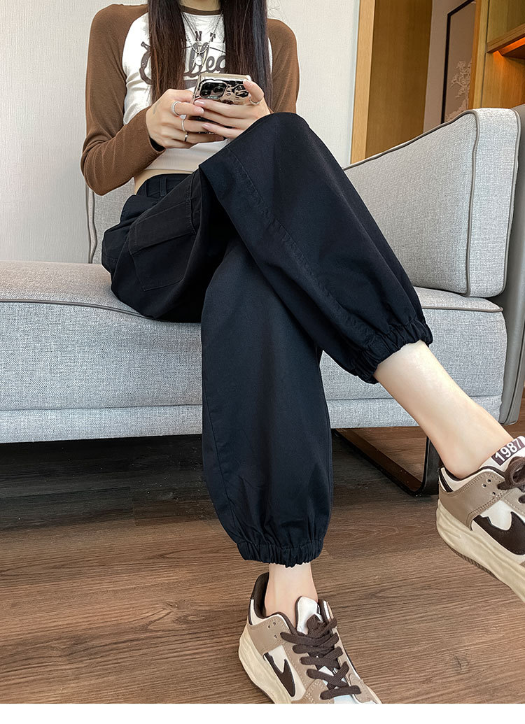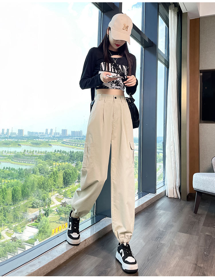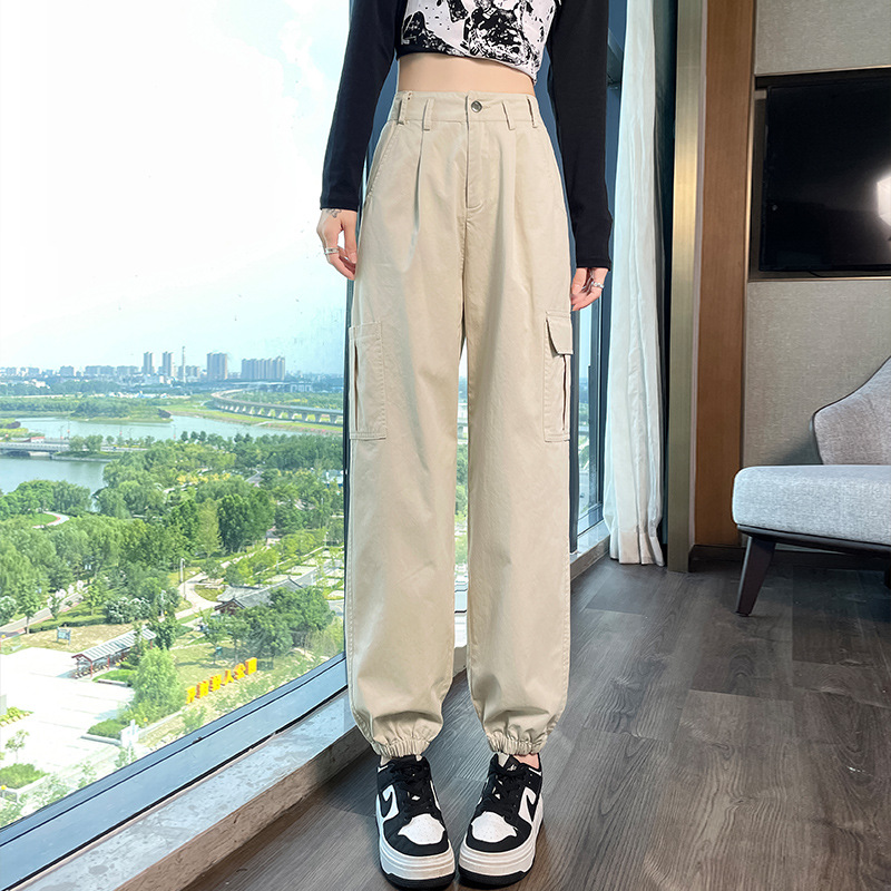 올 코튼 아메리칸 바지 여성 봄과 가을 2024 뉴 하이 허리 야외 등산 발목 묶인 스포츠 바지 E650
