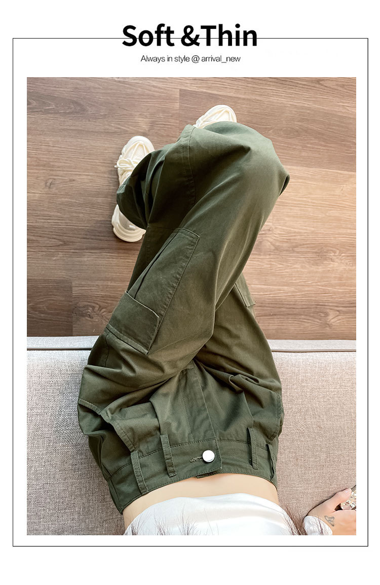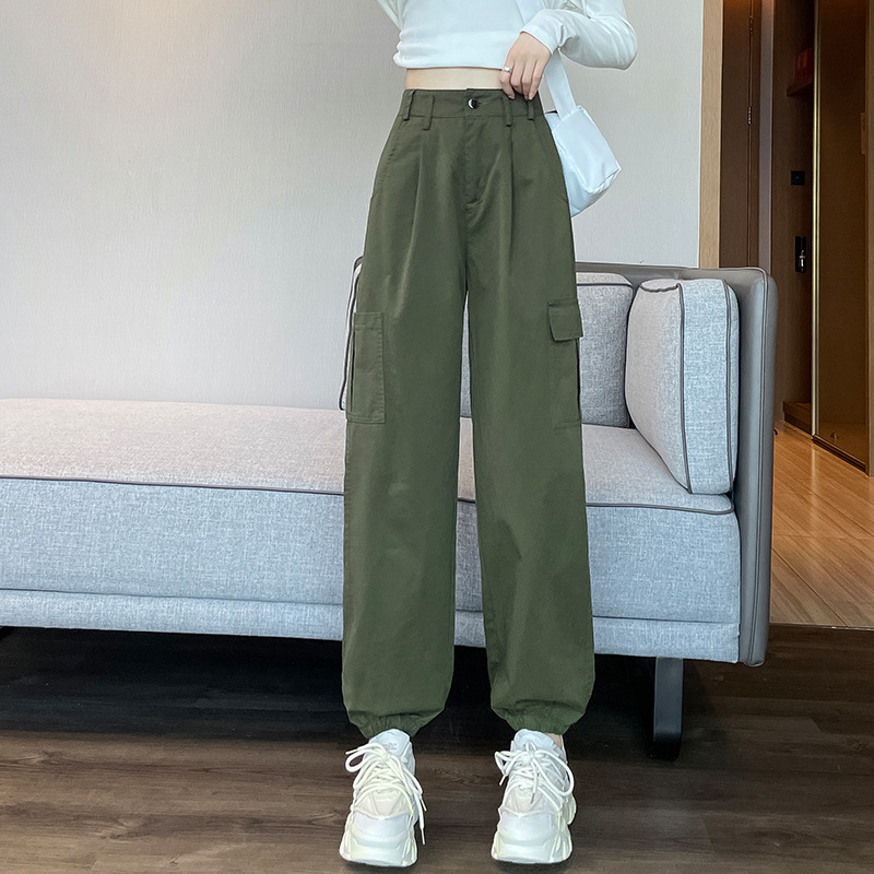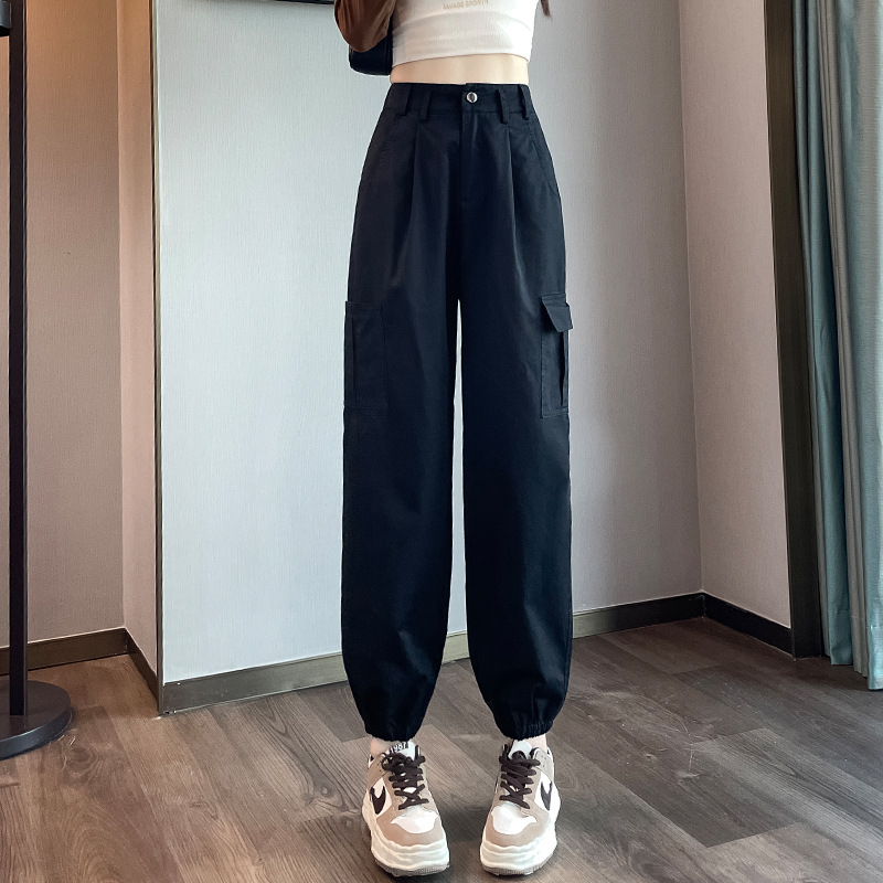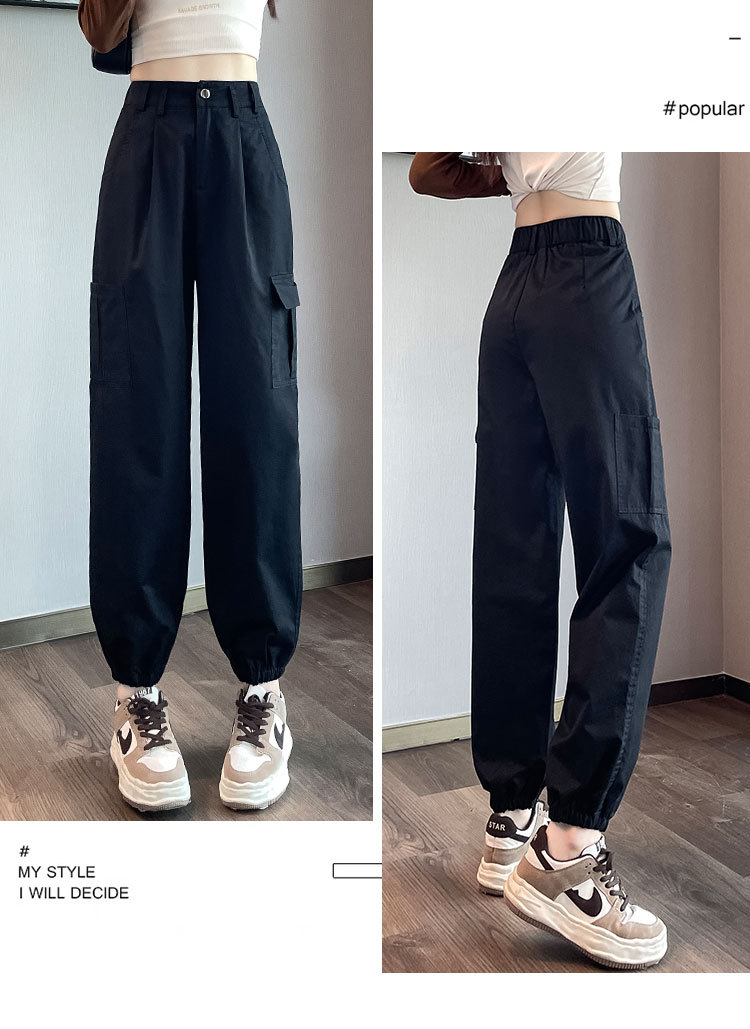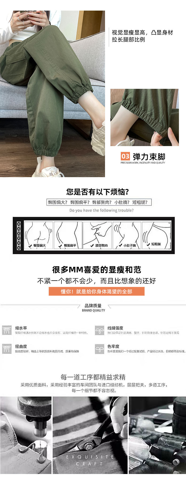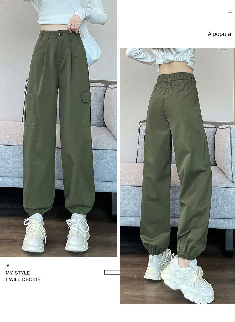 올 코튼 아메리칸 바지 여성 봄과 가을 2024 뉴 하이 허리 야외 등산 발목 묶인 스포츠 바지 E650