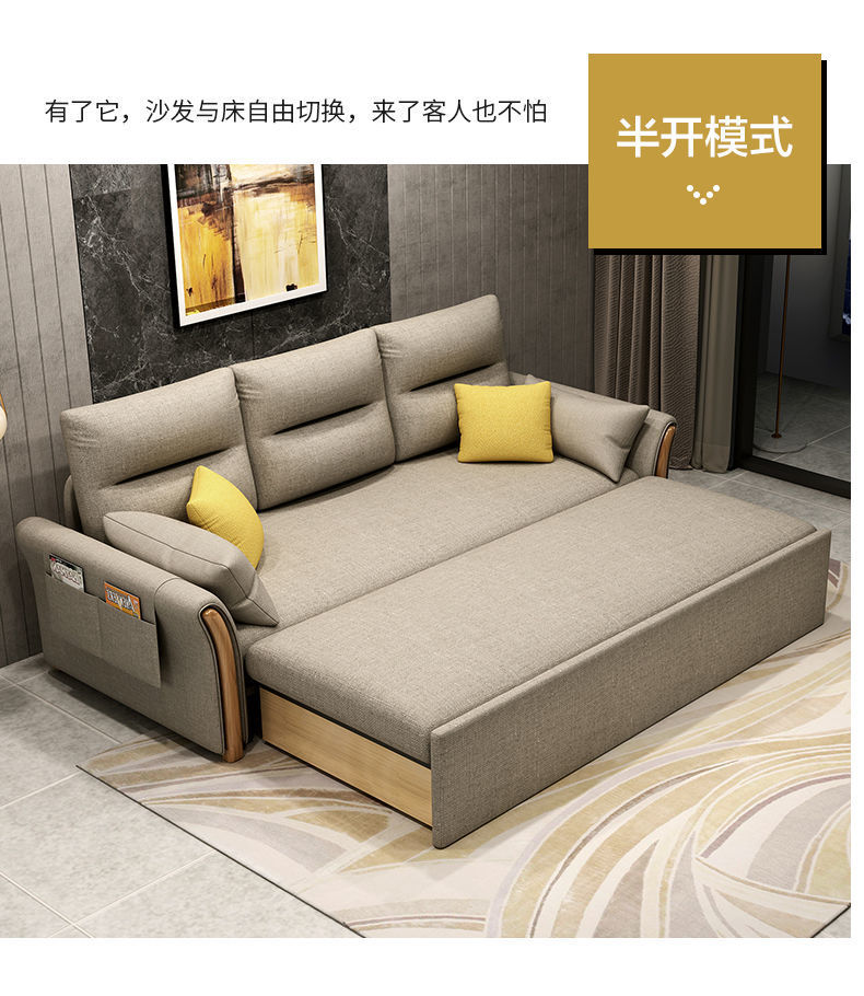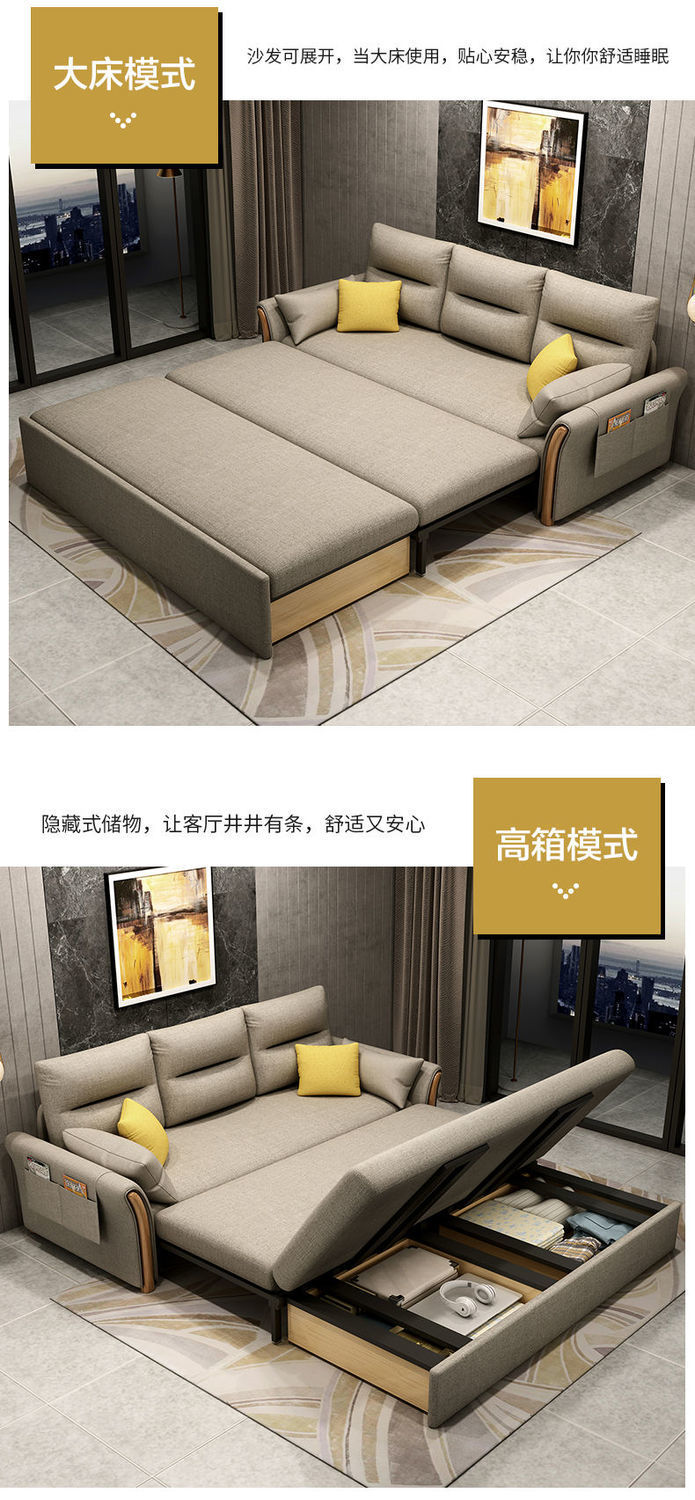 소파 침대 이중 목적 빛 고급 기술 천 접이식 다기능 거실 작은 아파트 텔레스코픽 푸시 풀 솔리드 우드 스토리지 박스스토어 가기