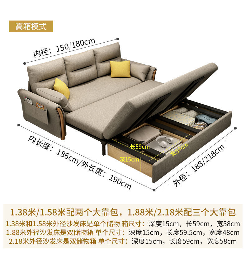 소파 침대 이중 목적 빛 고급 기술 천 접이식 다기능 거실 작은 아파트 텔레스코픽 푸시 풀 솔리드 우드 스토리지 박스