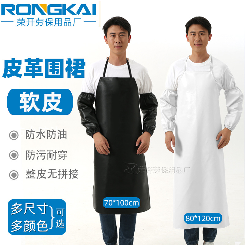 PU 가죽 방수 앞치마 턱받이 도축 공장 수생 어업 주방 방수 방수 남성과 여성의 가죽 소매 허리