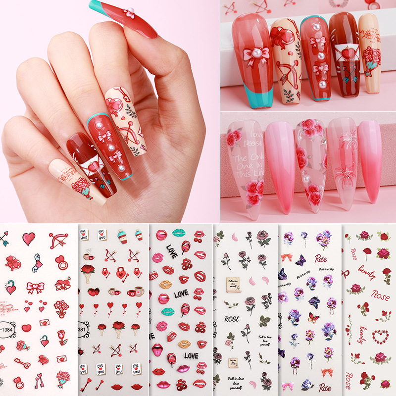 Zhengxiang 인터넷 유명인 사랑 립 프린트 발렌타인 데이 네일 스티커 DIY 매니큐어 사랑 장미 꽃 INS 스타일 네일 스티커스토어 가기