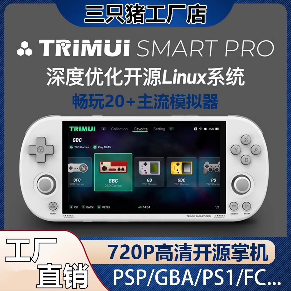 TRIMUI 스마트 프로 오픈 소스 휴대용 GBA 복고풍 게임 기계 PS 아케이드 FC 빨간색과 흰색 IPS HD 화면