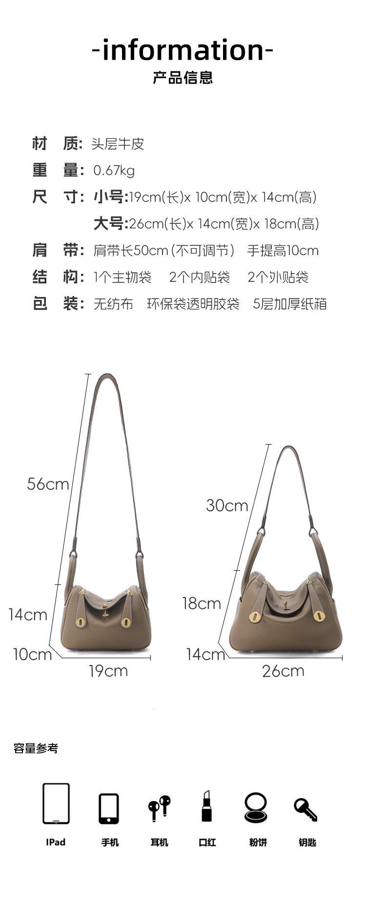 토고 1층 소가죽 린디백 숄더백 여성용 천연가죽 대용량 통근 크로스백 스몰백