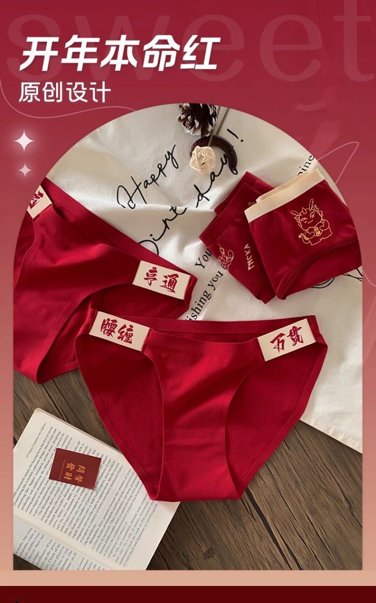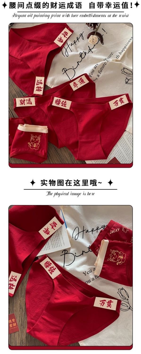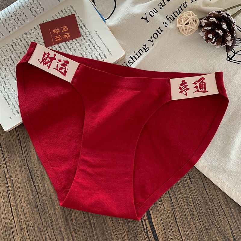 행운과 부자! 출생 년 빨간 속옷 여성 용 년 소녀 높은 슬릿 코튼 삼각형 반바지 신부 결혼식