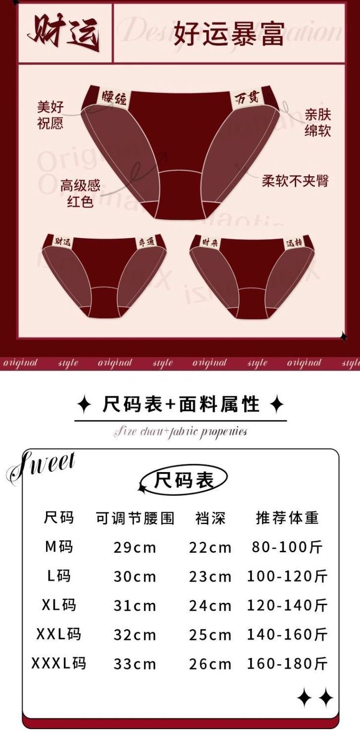 행운과 부자! 출생 년 빨간 속옷 여성 용 년 소녀 높은 슬릿 코튼 삼각형 반바지 신부 결혼식스토어 가기