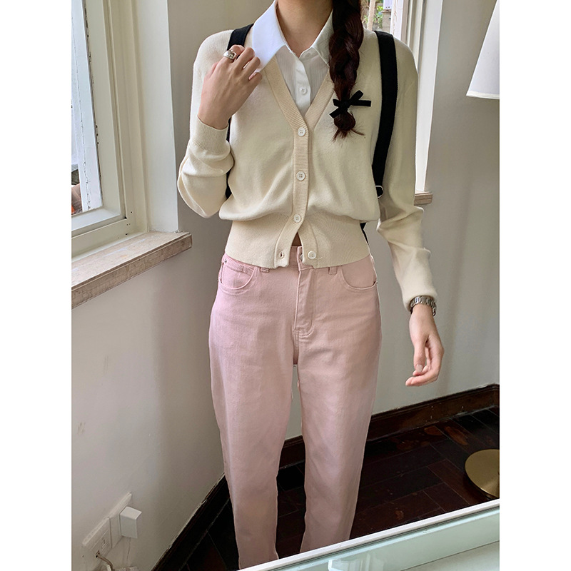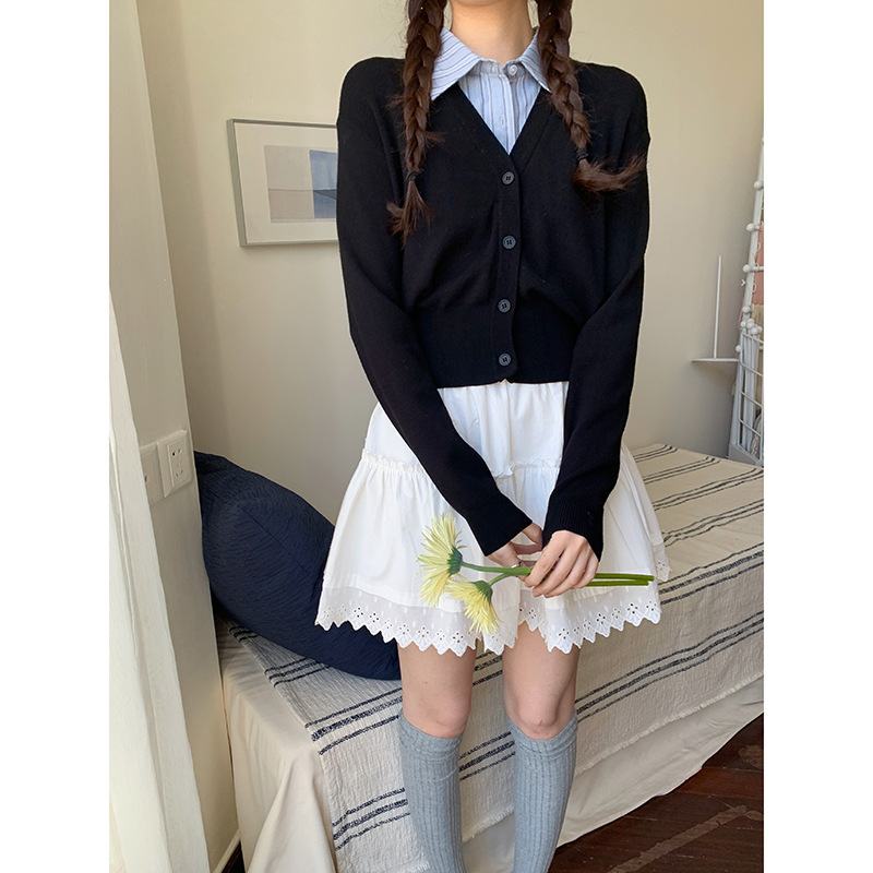 [jisoo 스타일 가짜 투피스] Ge Ming 한국 스타일 폴로 칼라 니트 가디건 여성 2025 가을 탑 X8207F