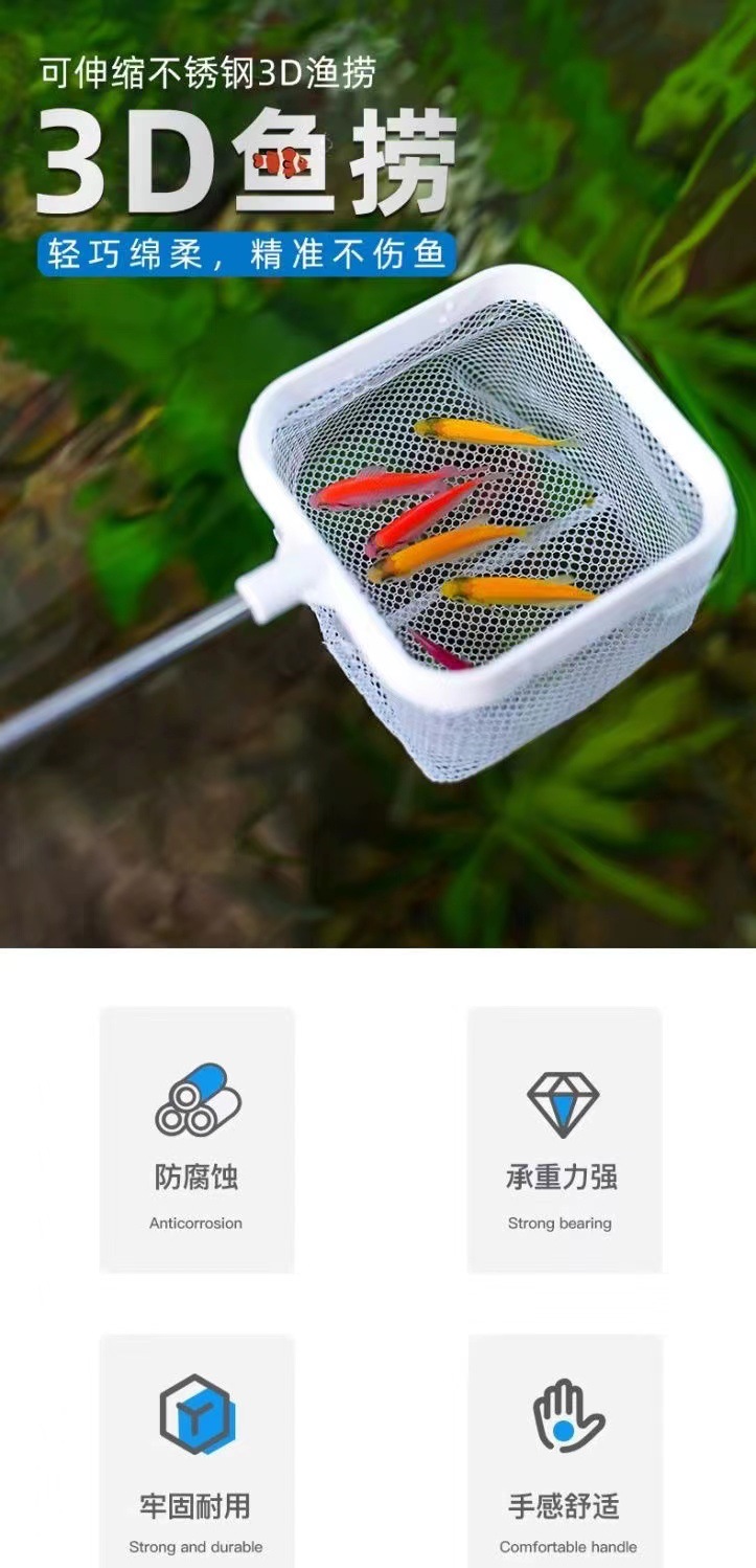 3D 낚시 업그레이드 이동식 스테인레스 스틸 개폐식 낚시 그물 물고기 탱크 관상용 생선 그물 복사 그물스토어 가기