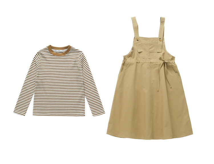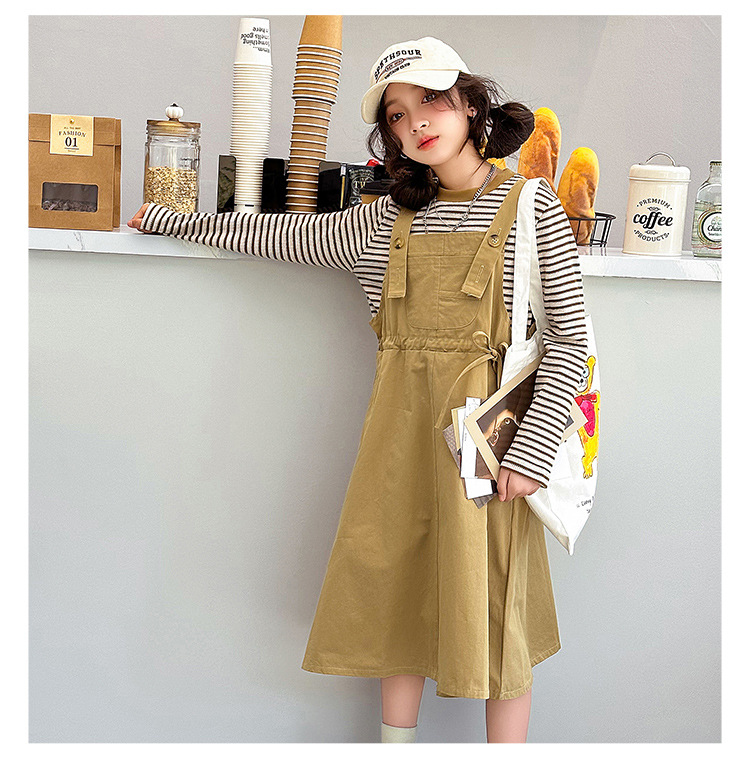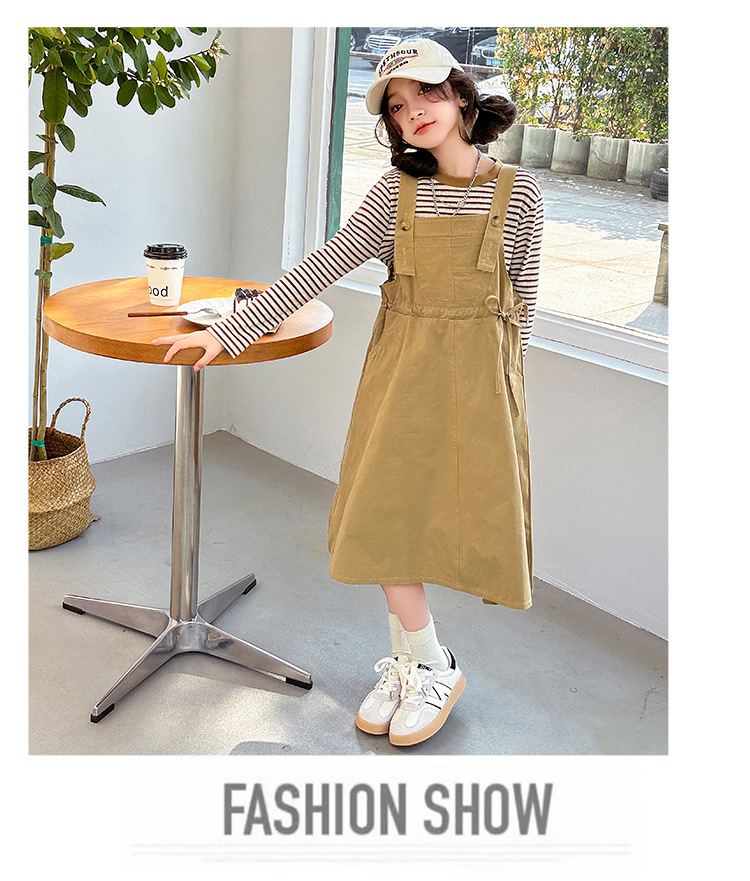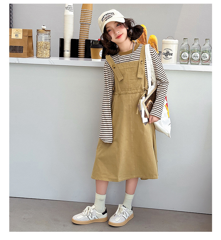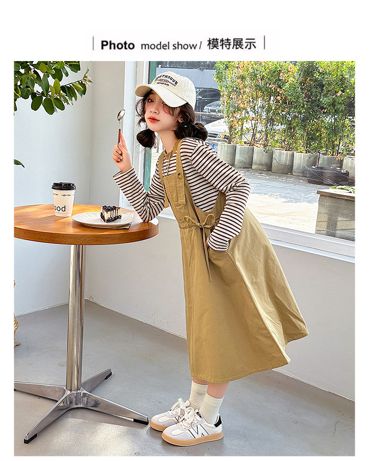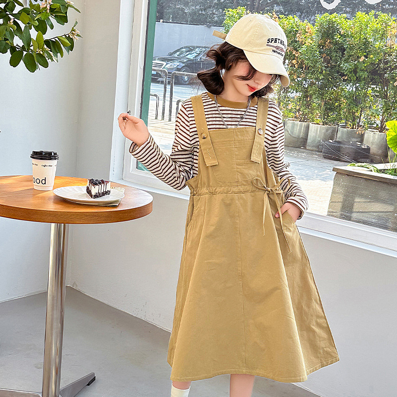 소녀 원피스 봄과 가을 의류 2024 새로운 어린이 봄 서양식 스커트 소녀의 큰 어린이 유행 서스펜더 스커트 세트스토어 가기