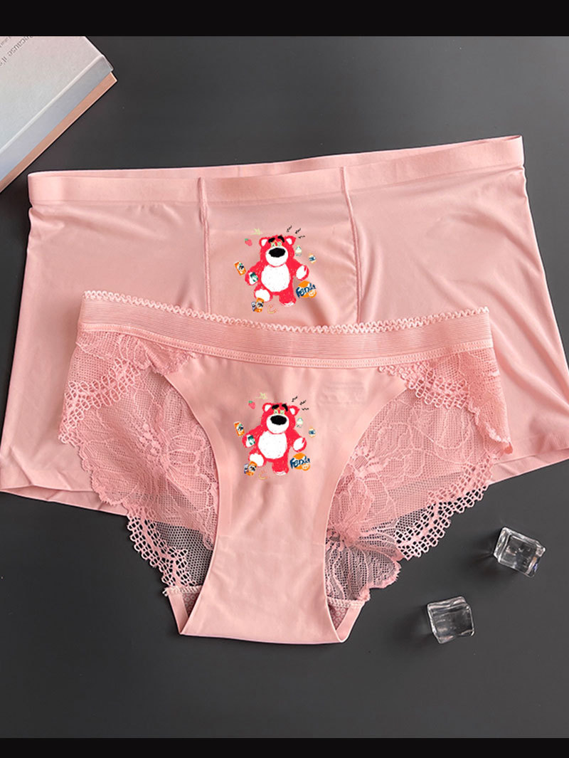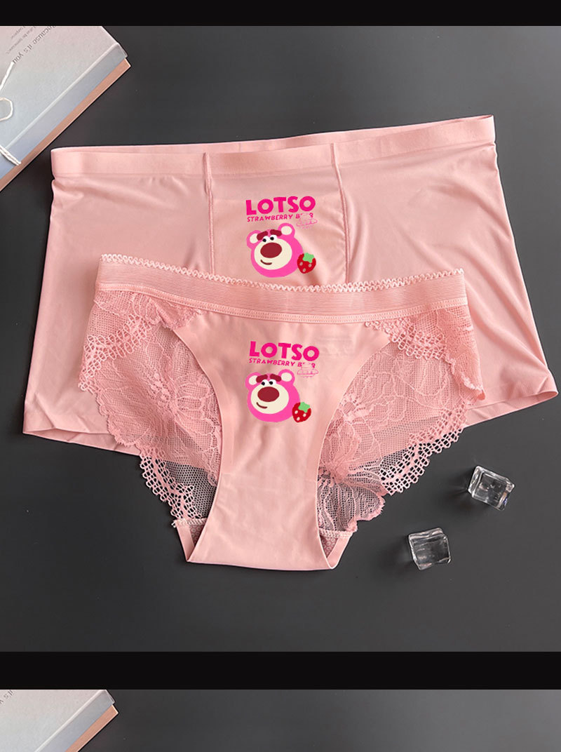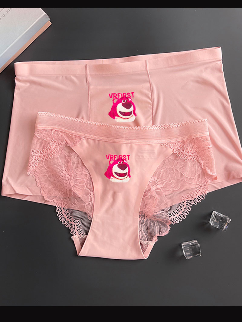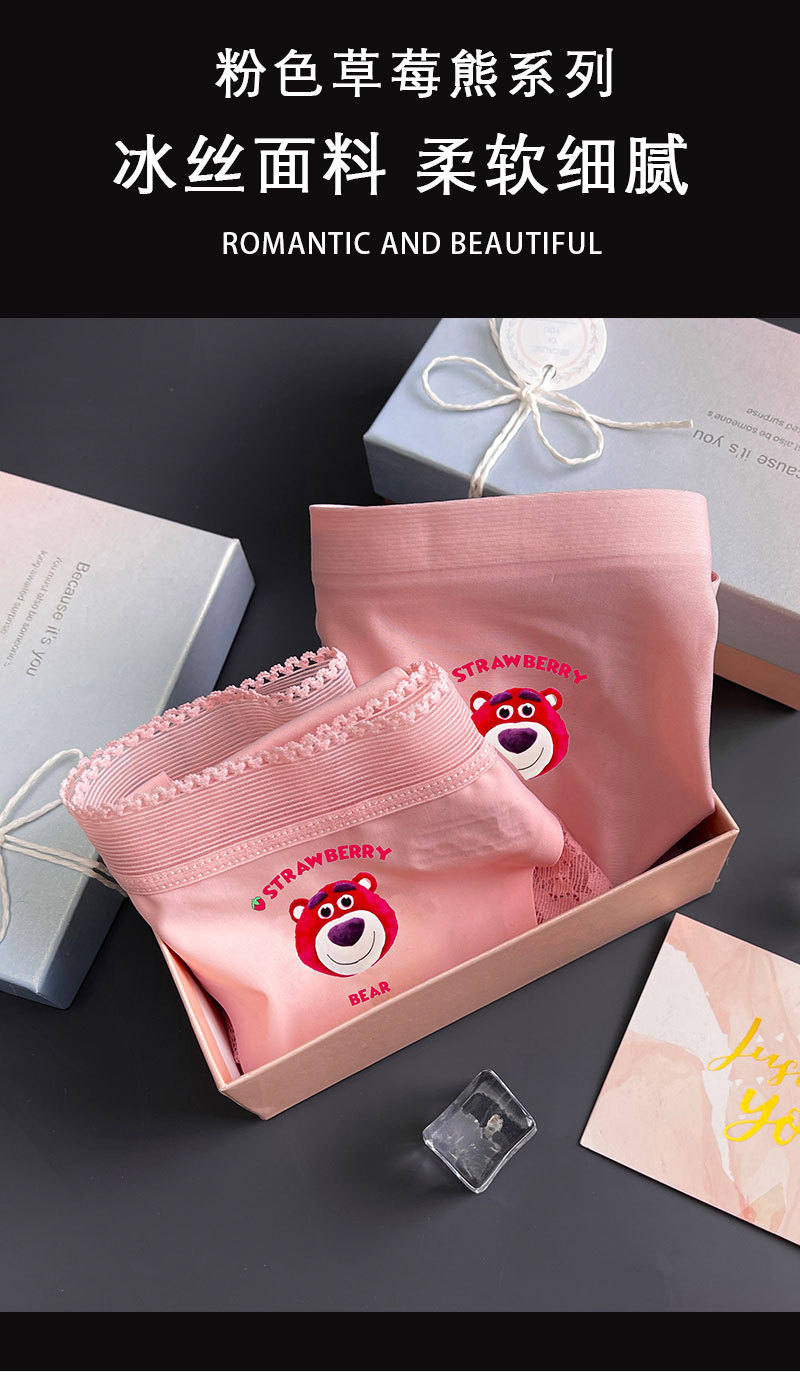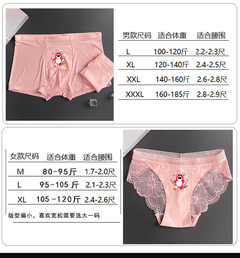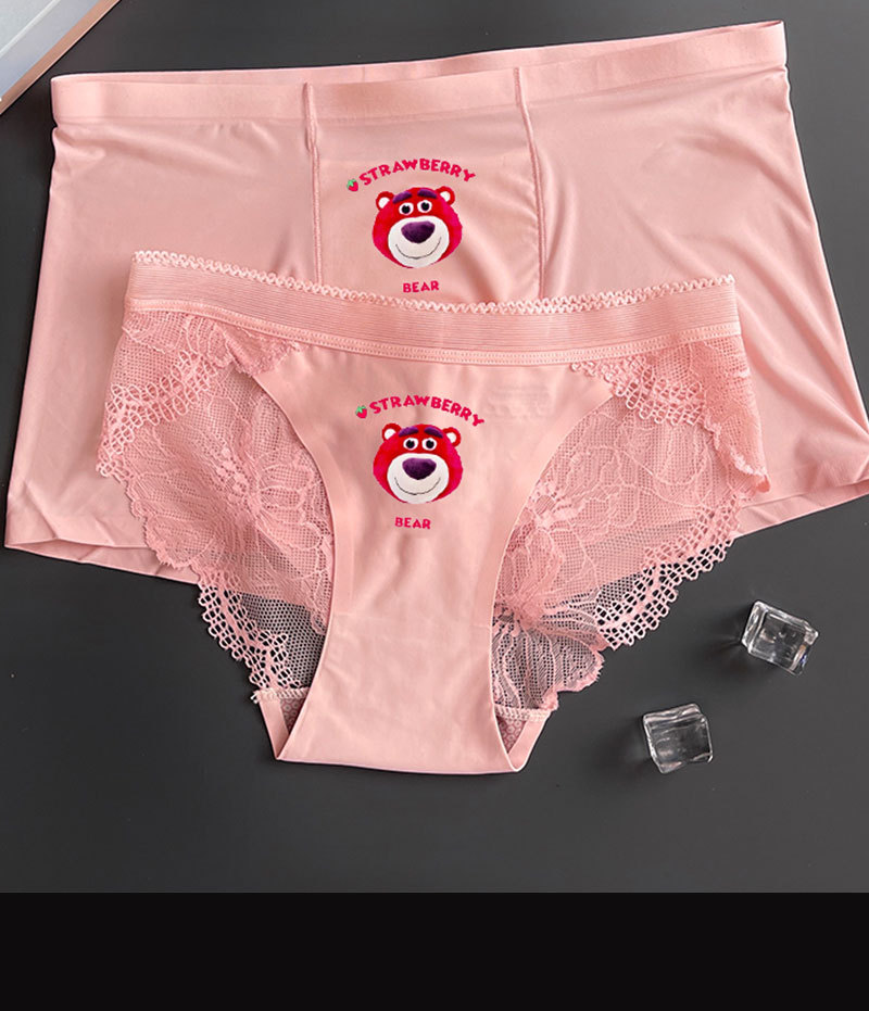 커플 속옷 핑크 딸기 곰 한 남자와 한 여자 레이스 아이스 실크 원활한 섹시한 순수한 욕망 귀여운 얇은 선물 상자