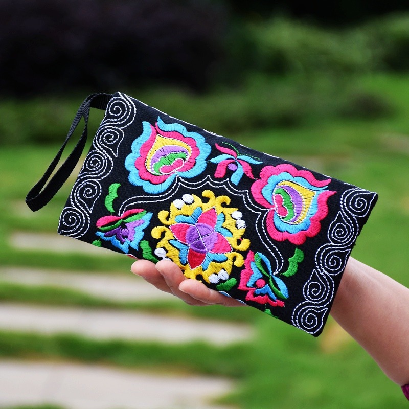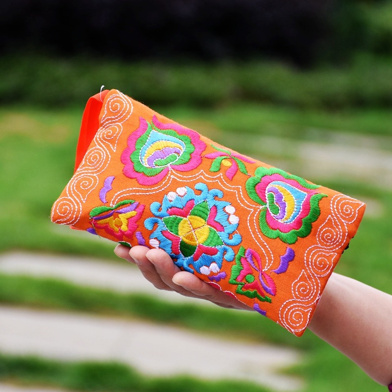 윈난 민족 자수 클러치 직물 화장품 가방 대용량 여성 긴 지갑 대외 무역 변화 휴대 전화 가방스토어 가기