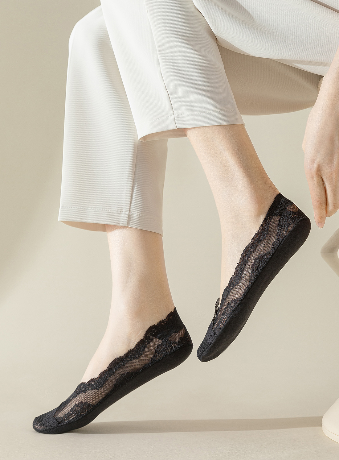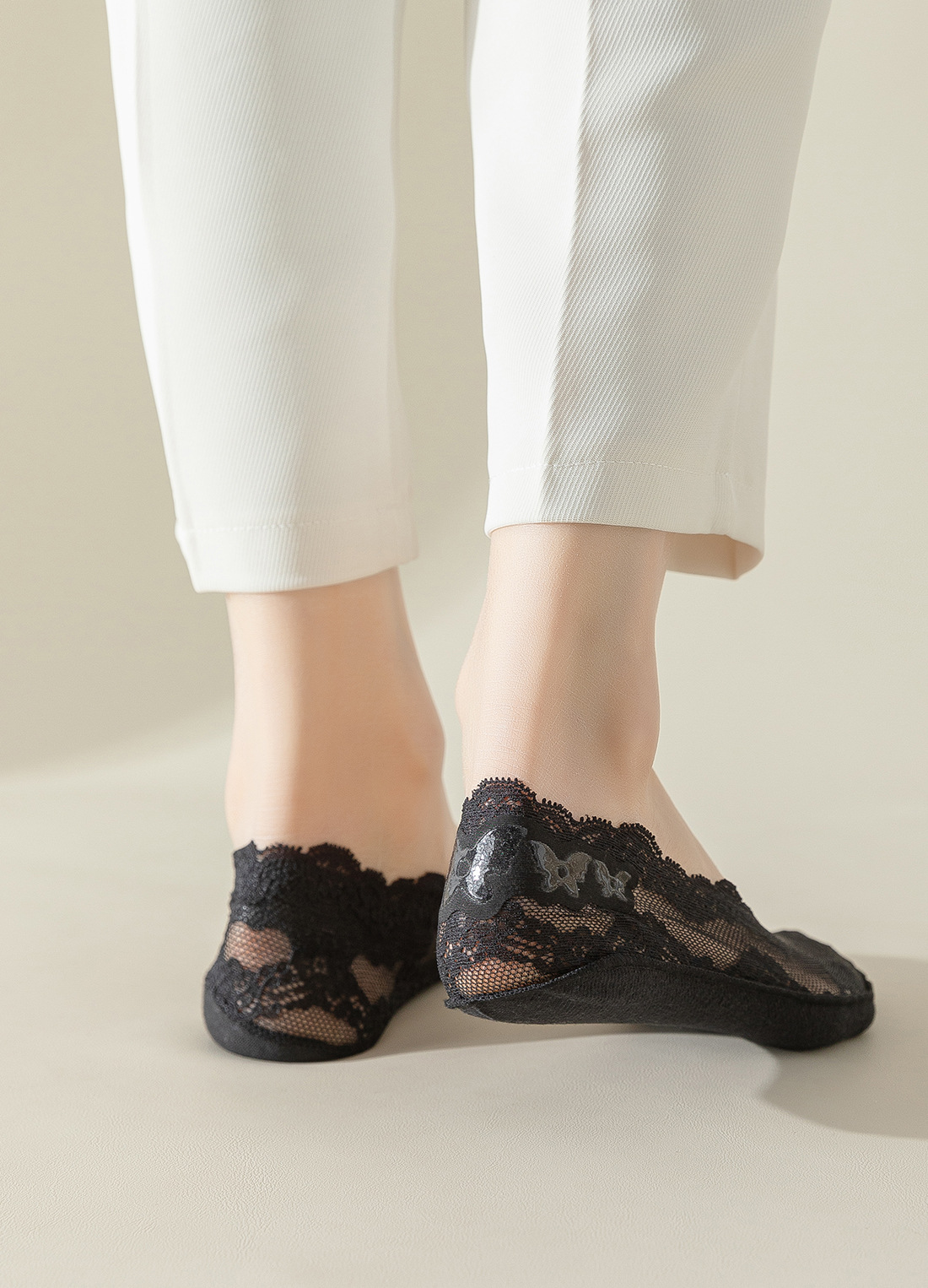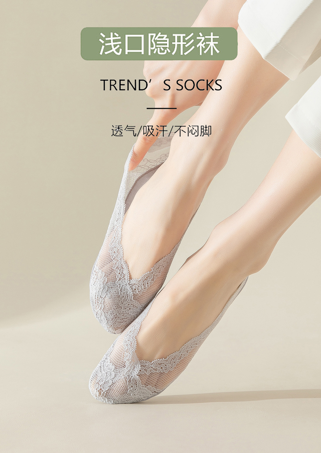 레이스 캐주얼 만능 보트삭스 여성용 미끄럼 방지 면바닥 얕은 굽 하이힐 양말 여름용 얇은 땀 흡수 통기성 인비저블스토어 가기