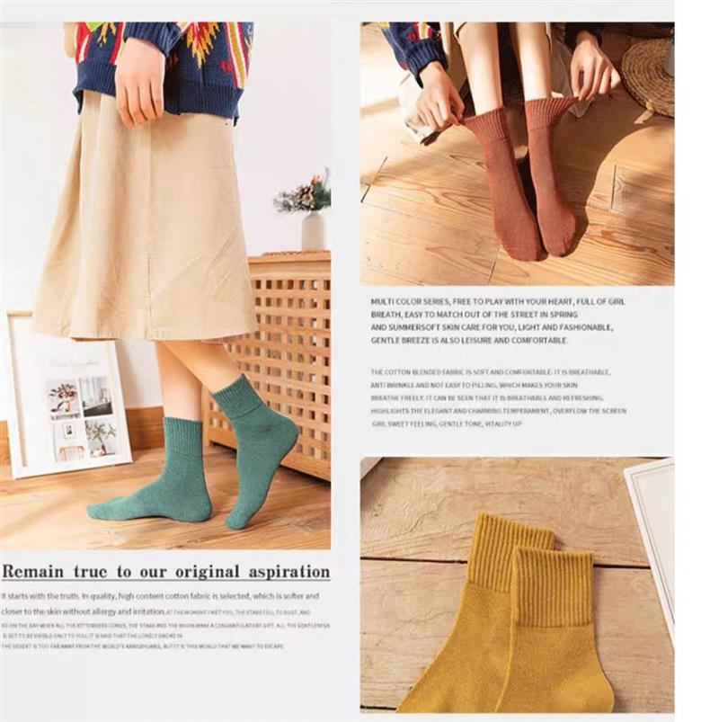 기모 두꺼운 양말 여성의 겨울 중반 종아리 길이 양말 캔디 컬러 테리 양말 탈취제 스타킹 따뜻한 테리 겨울 여성스토어 가기