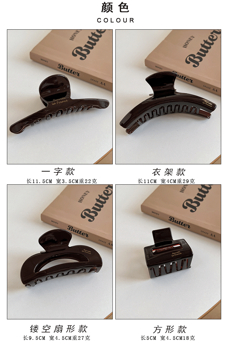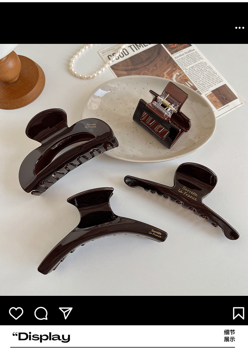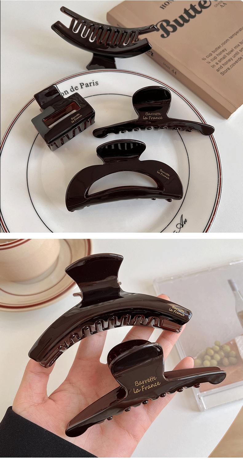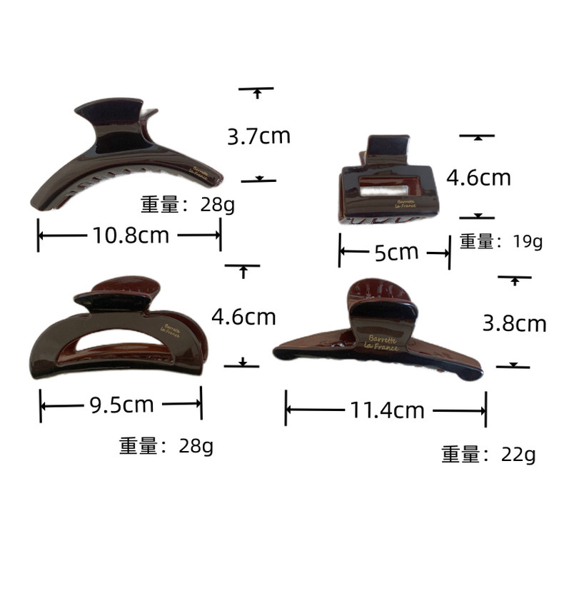 프랑스 스타일 복고풍 다크 브라운 아세테이트 그립 여성 한국 스타일 골드 표준 고급 머리핀 뒤 머리 updo 상어 클립