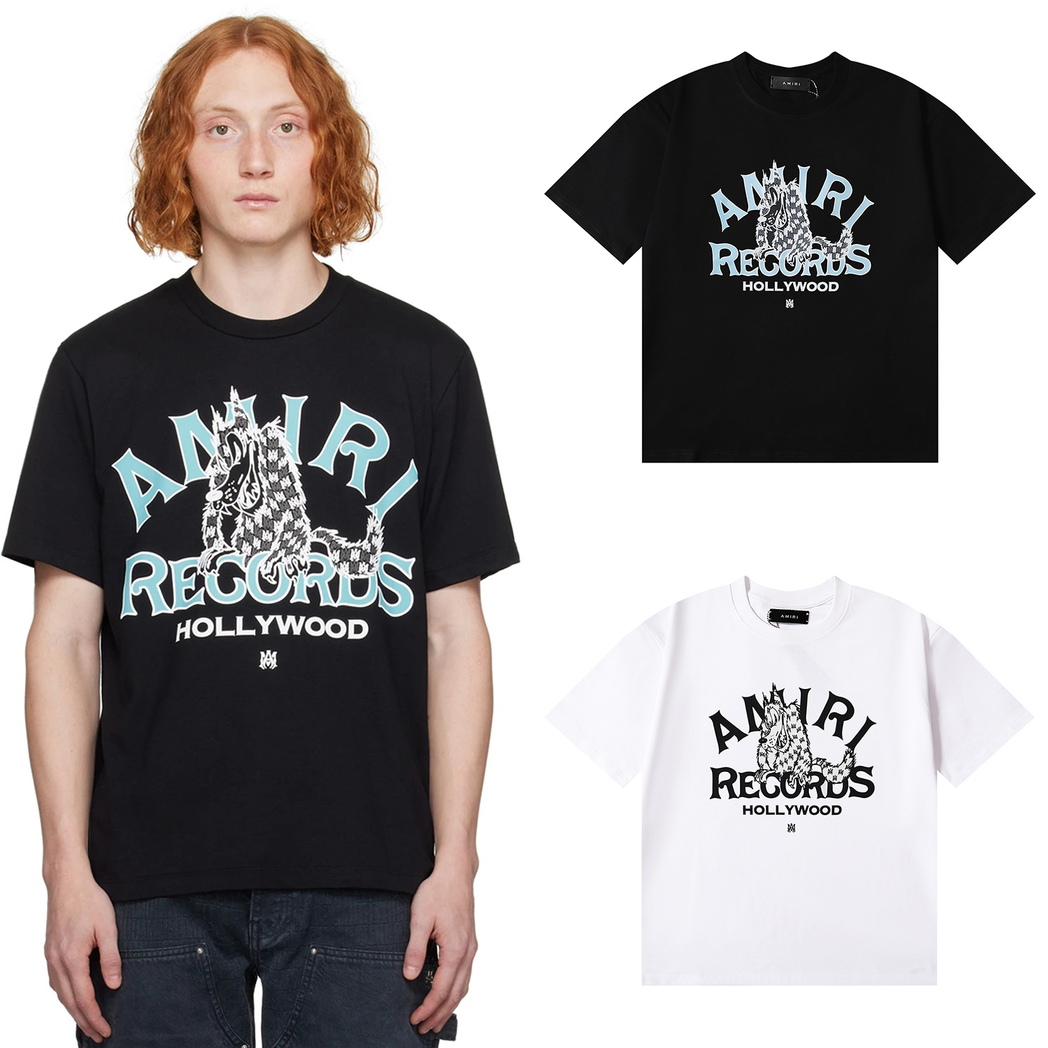 틈새 트렌디 한 아미리 울프 프린트 하이 퀄리티 코튼 반팔 티셔츠 남성과 여성의 느슨한 뚱뚱한 남자 바닥 반팔 풀오버