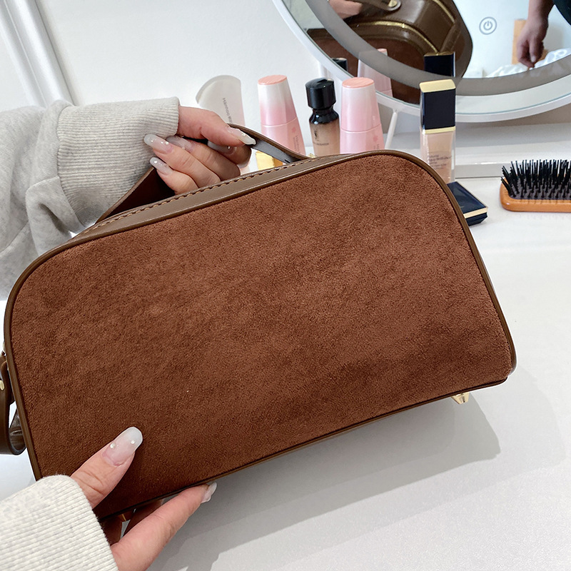 화장품 가방 여성용 수납 상자 플록 휴대용 화장품 케이스 여행 화장품 세면 용품 수납 가방 마더 백 크로스 바디