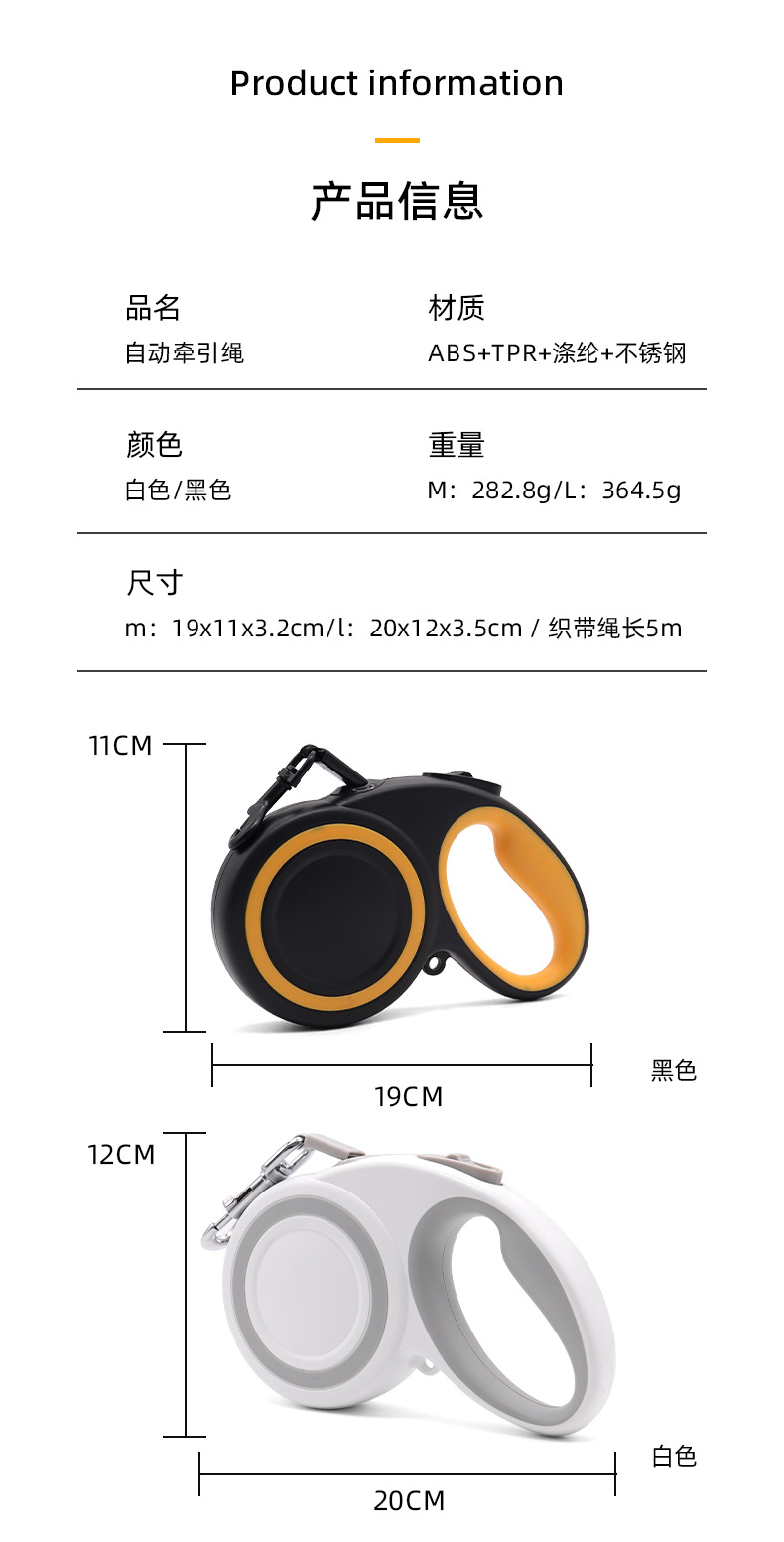 개 가죽끈, 대형견용 접이식, 폭발 방지, 고양이 및 애완동물용 접이식 가죽끈, 손을 조이지 않는 개 산책용 로프