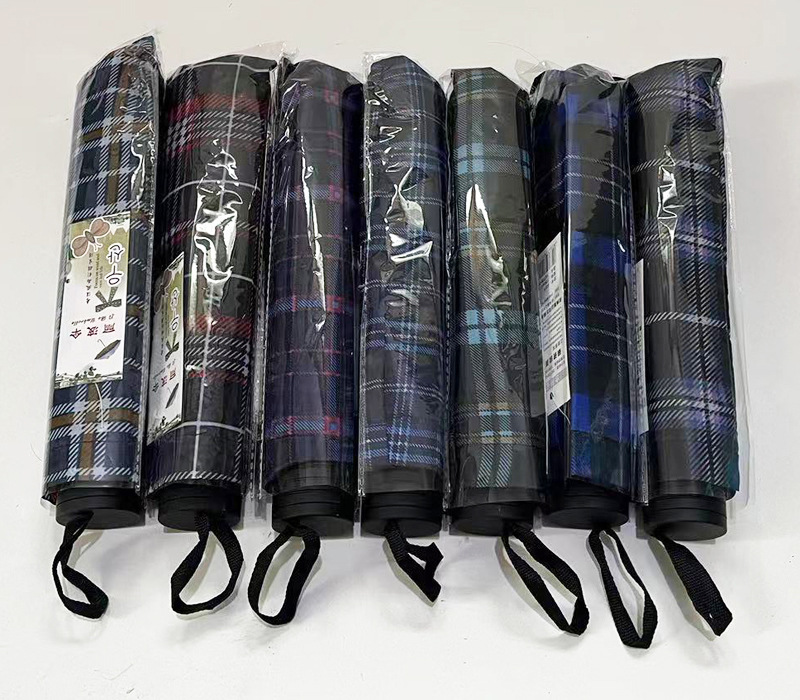 10K 격자 무늬 우산 클래식 3 접이식 우산 휴대용 미니 접이식 짧은 손잡이 우산 프로모션 선물 공장 직접 판매 특별 제공스토어 가기