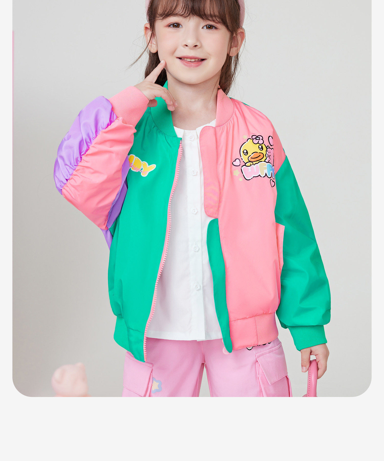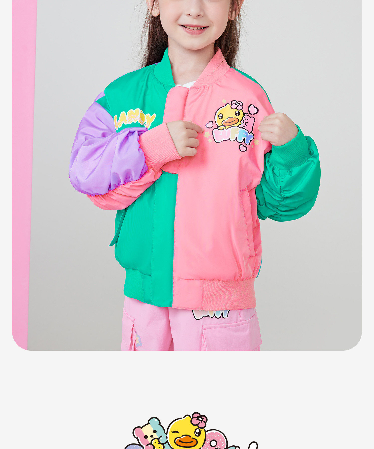 Bduck 작은 노란 오리 어린이 의류 소녀 야구 유니폼 어린이 재킷 봄 2024 새로운 어린 소녀 유행 재킷스토어 가기