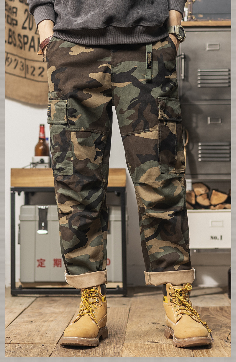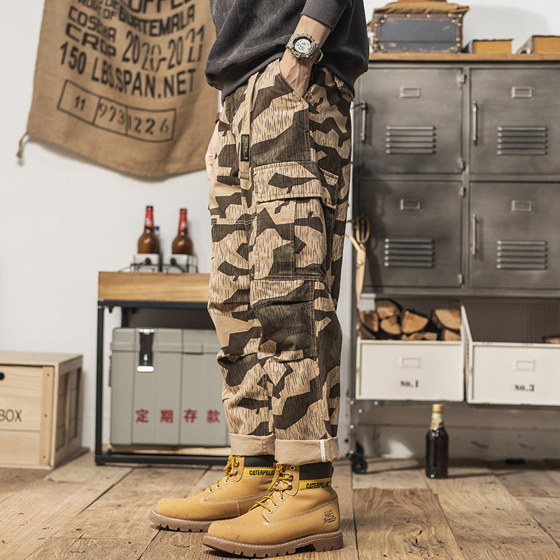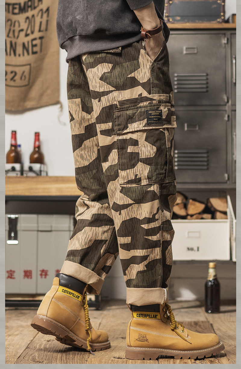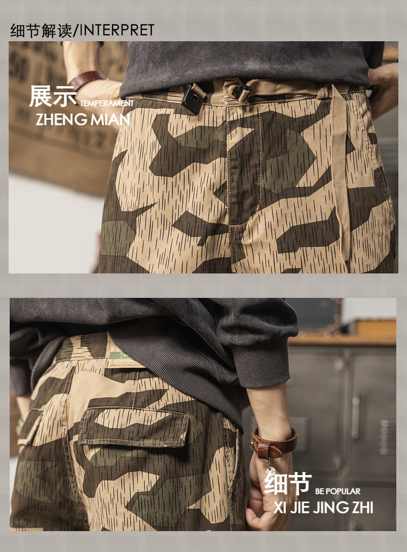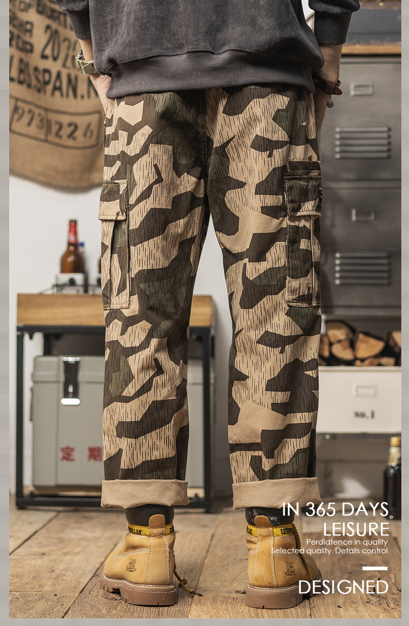 2024 봄 새로운 일본식 바지 복고풍 캐주얼 바지 남성용 느슨한 위장 바지 트렌디 한 넓은 다리 바지