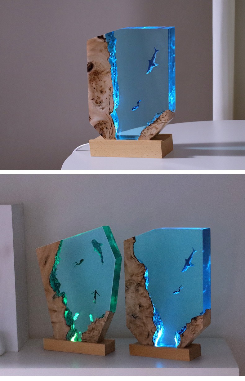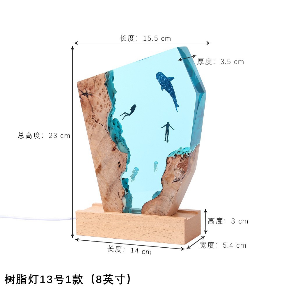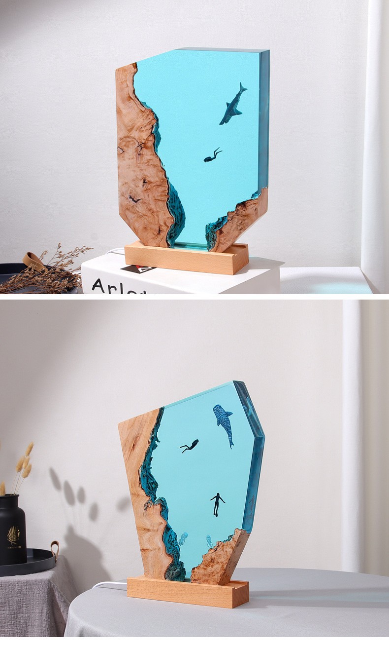 홈 장식 침실 부드러운 조명 사무실 데스크탑 창조적 인 해양 예술 장식 선물 단단한 나무 수지 야간 조명