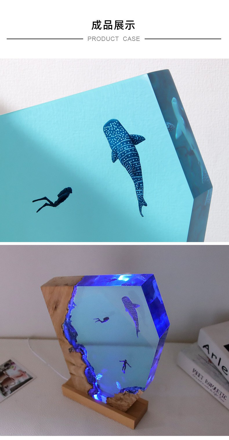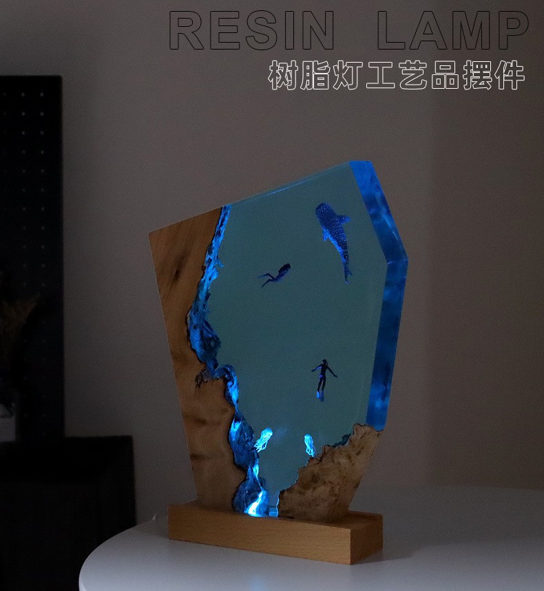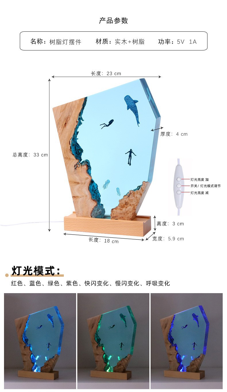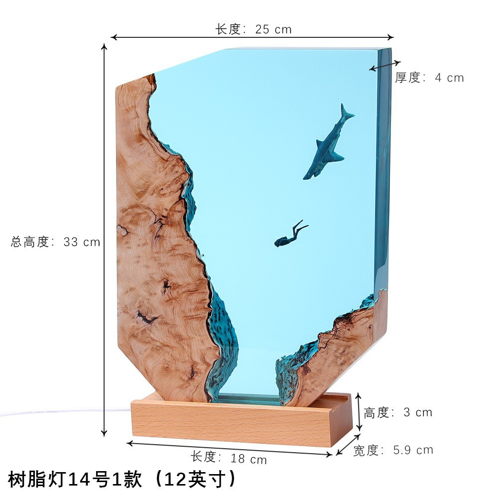 홈 장식 침실 부드러운 조명 사무실 데스크탑 창조적 인 해양 예술 장식 선물 단단한 나무 수지 야간 조명