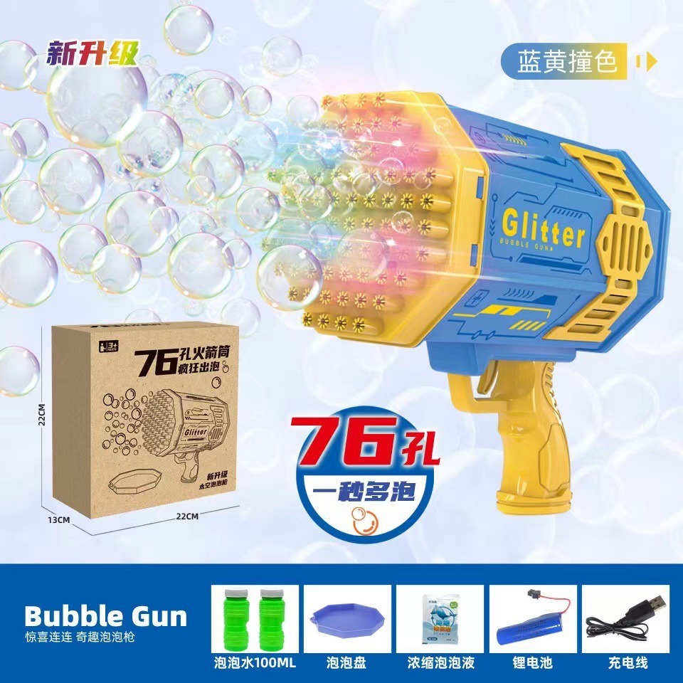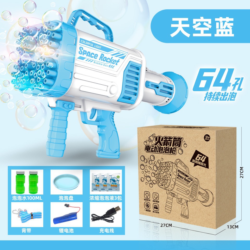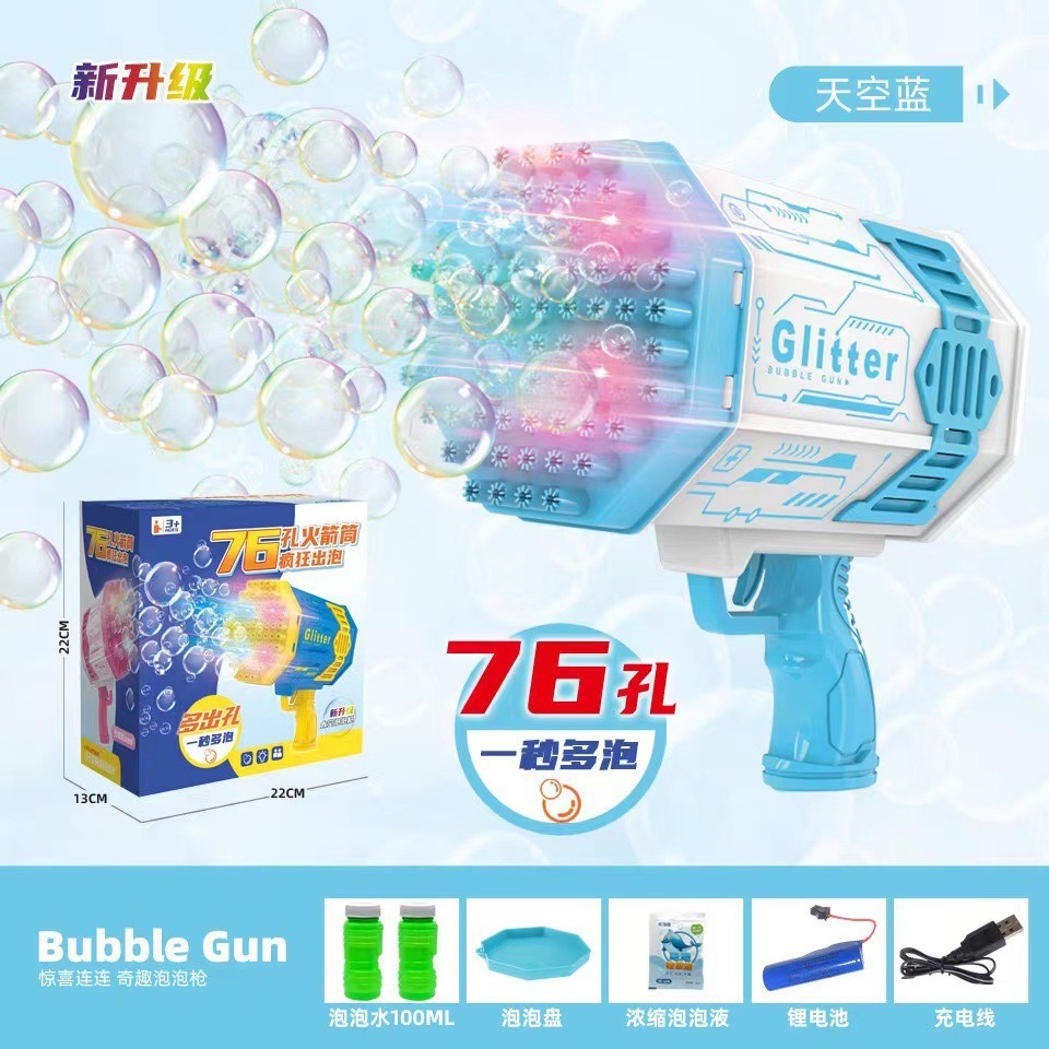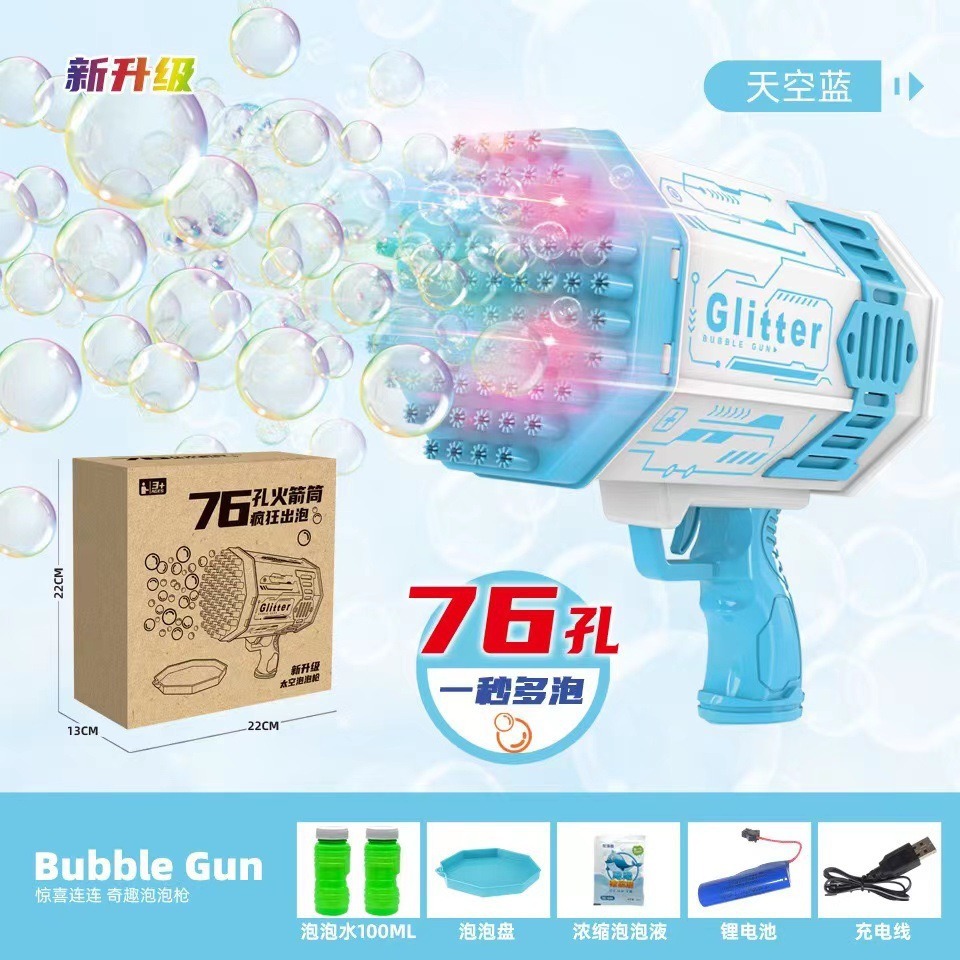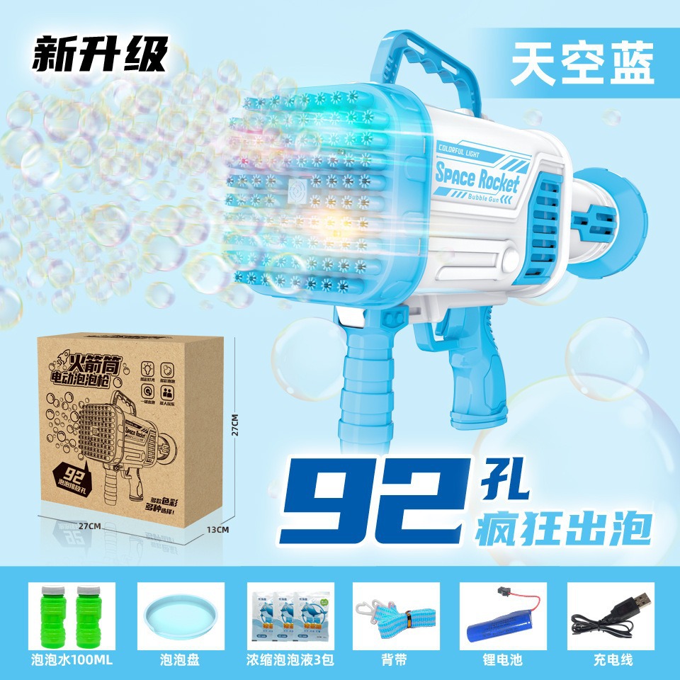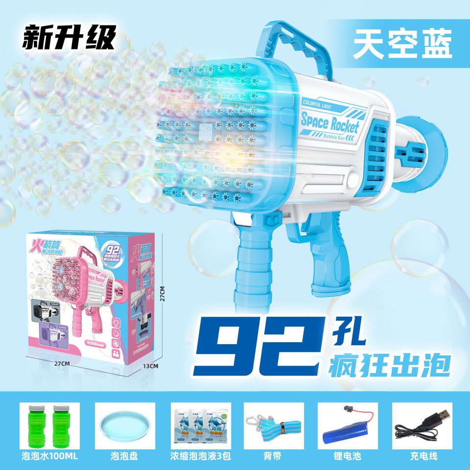 • 92 홀 스카이 블루 [컬러 박스] 로켓 발사기 전기 거품 총 [7 컬러 라이트]]