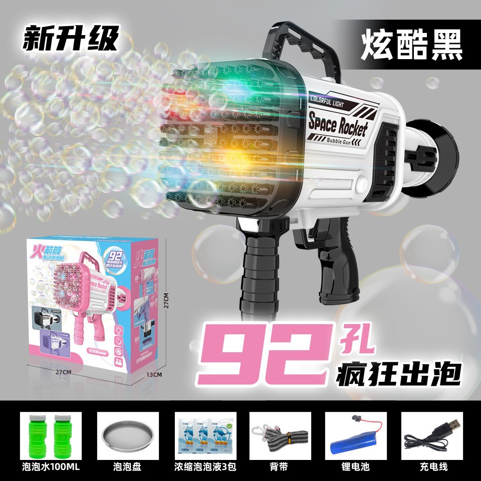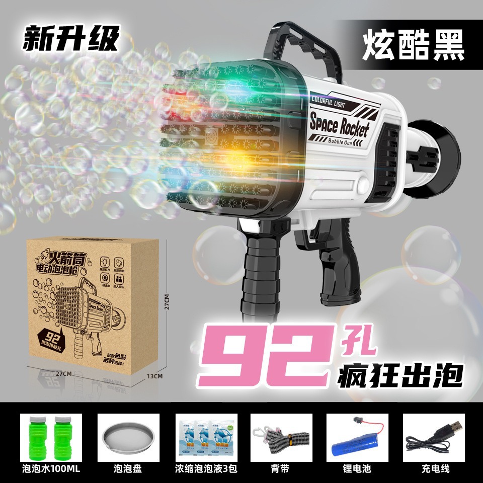 • 92 홀 쿨 블랙 [컬러 박스] 로켓 발사기 전기 거품 총 [7 컬러 라이트]]