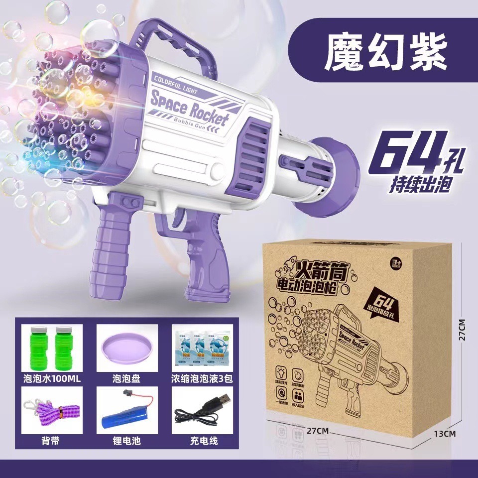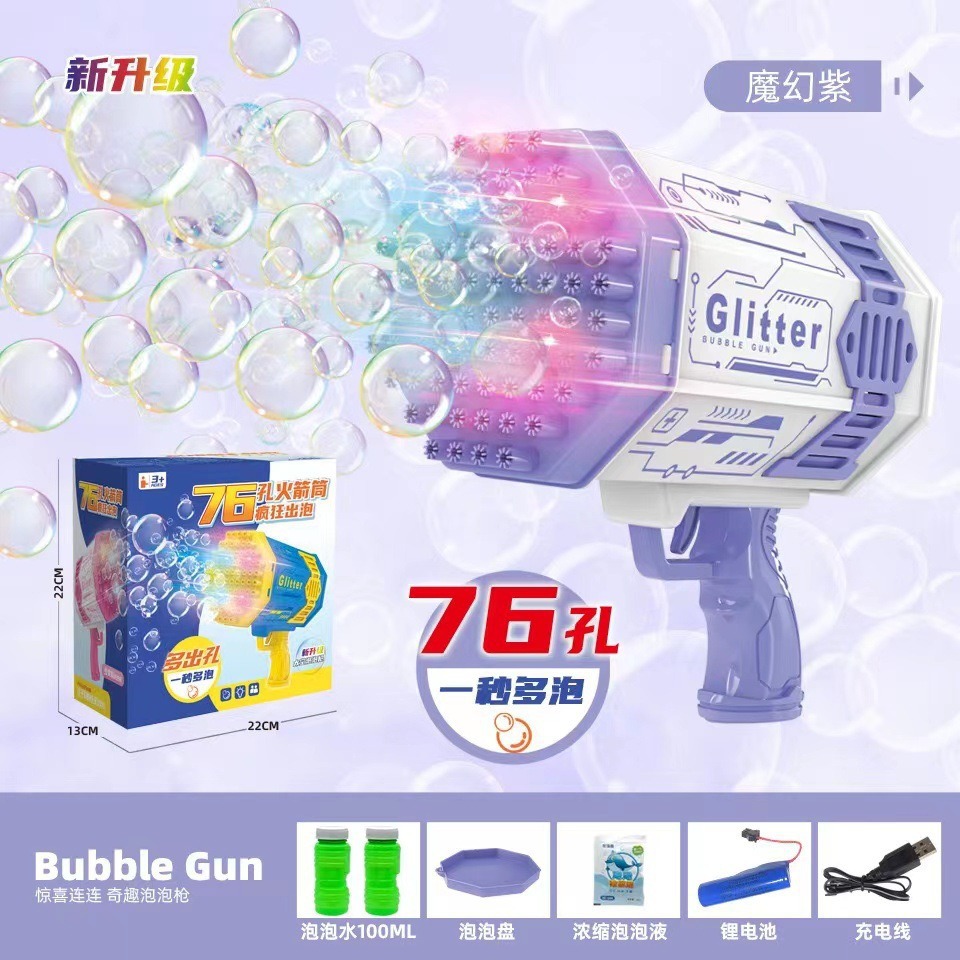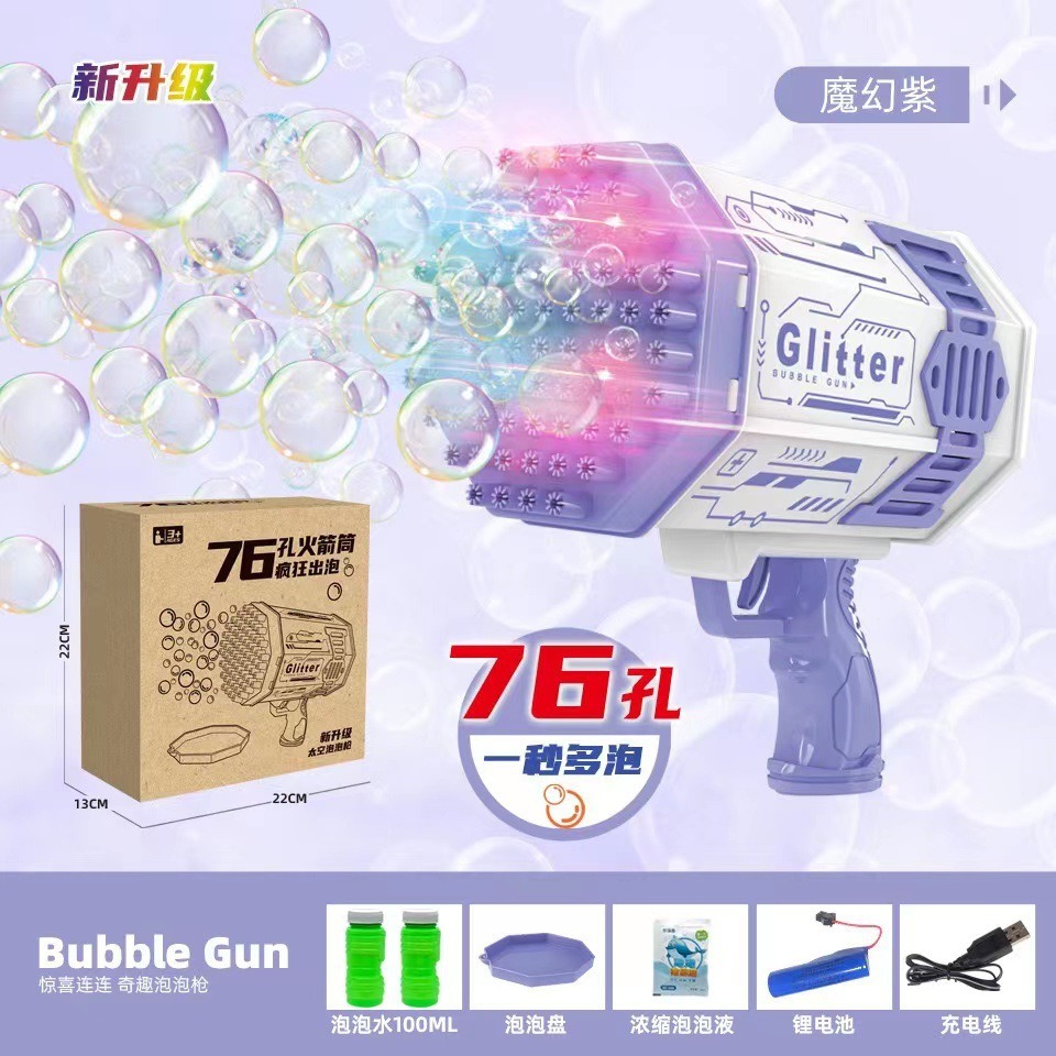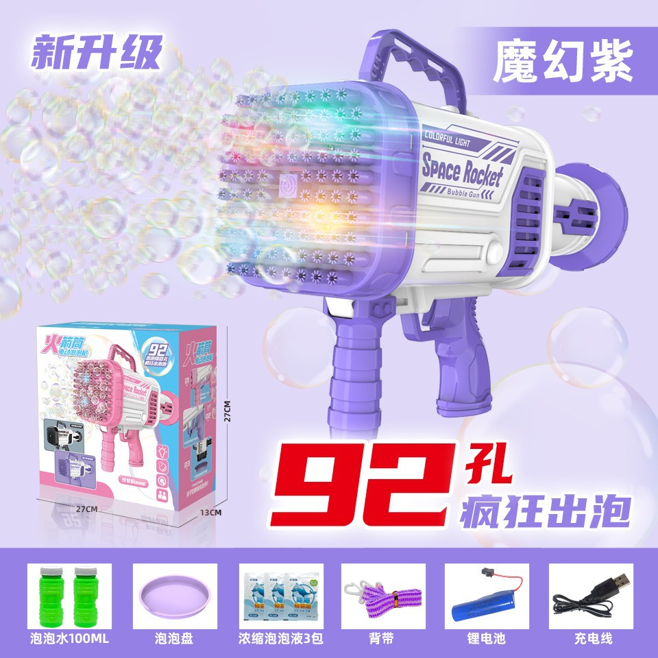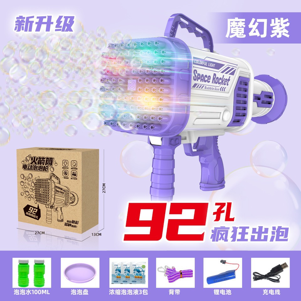 • 92 홀 매직 퍼플 [컬러 박스] 로켓 발사기 전기 버블 건 [7 라이트]]