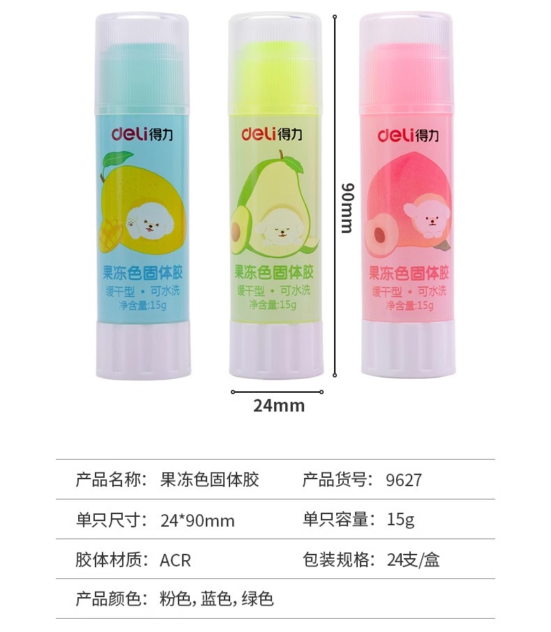 델리 젤리 접착제 스틱 과일 고체 접착제 고점도 투명 컬러 어린이 유치원 초등학생 수제 용품
