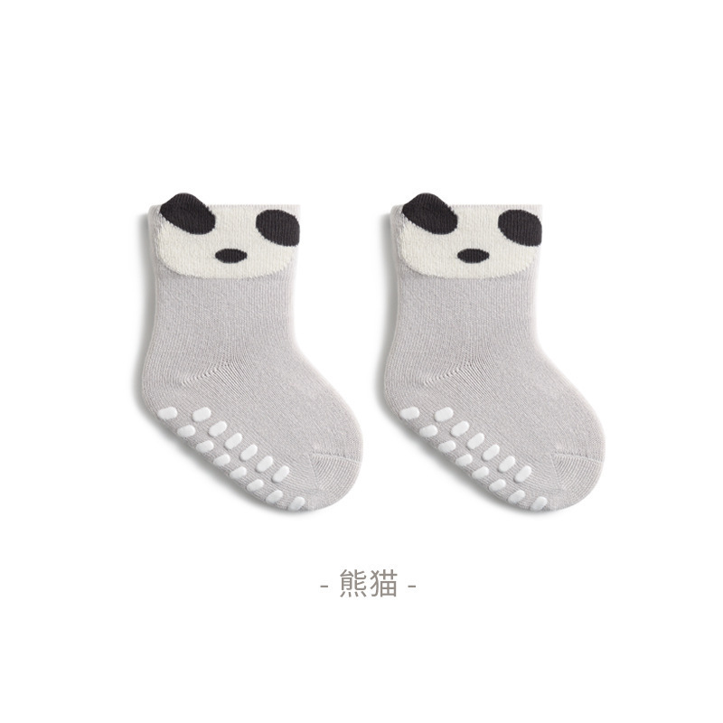 25 봄과 가을 새로운 아기 양말 아기 바닥 양말 어린이 실내 미끄럼 방지 유아 양말 입체 귀 만화 양말