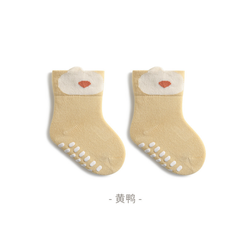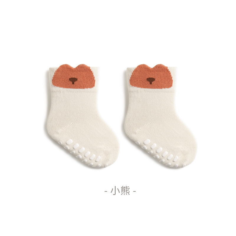 25 봄과 가을 새로운 아기 양말 아기 바닥 양말 어린이 실내 미끄럼 방지 유아 양말 입체 귀 만화 양말스토어 가기