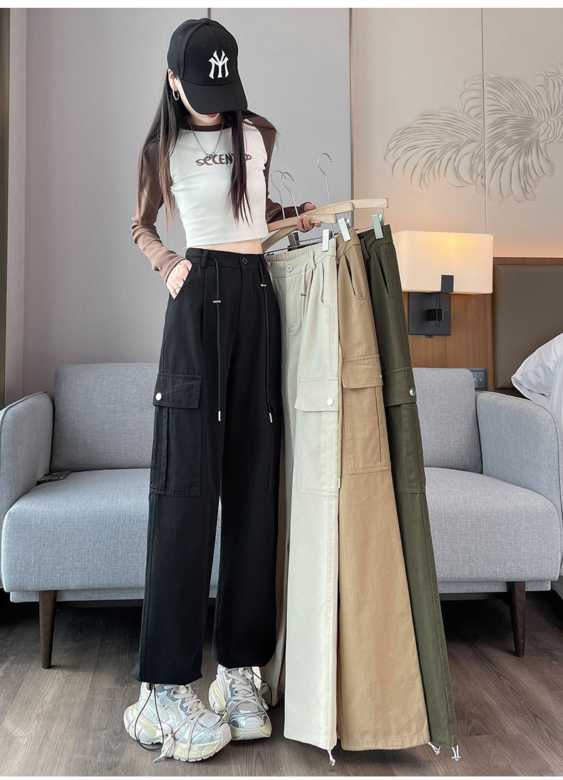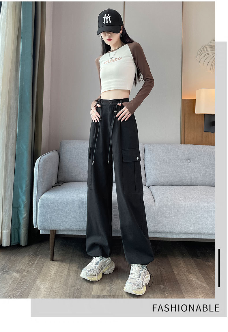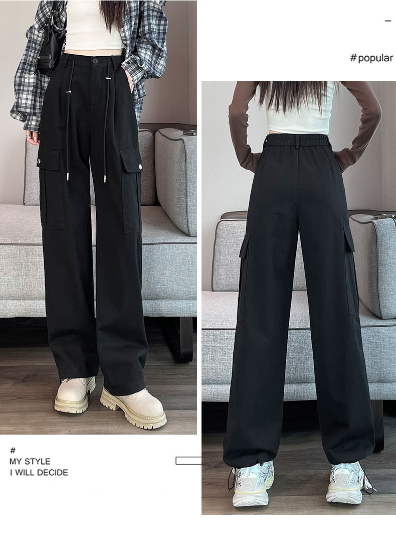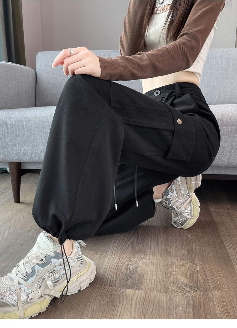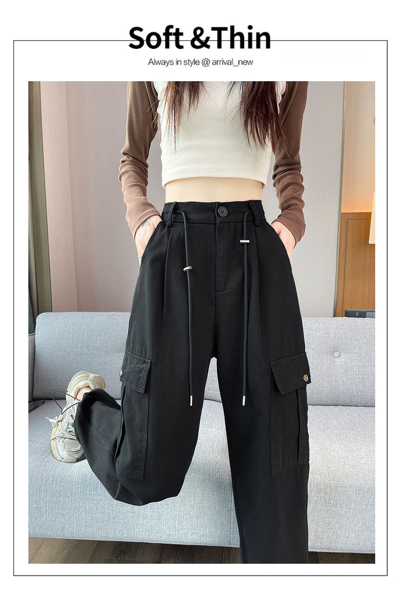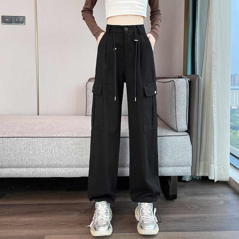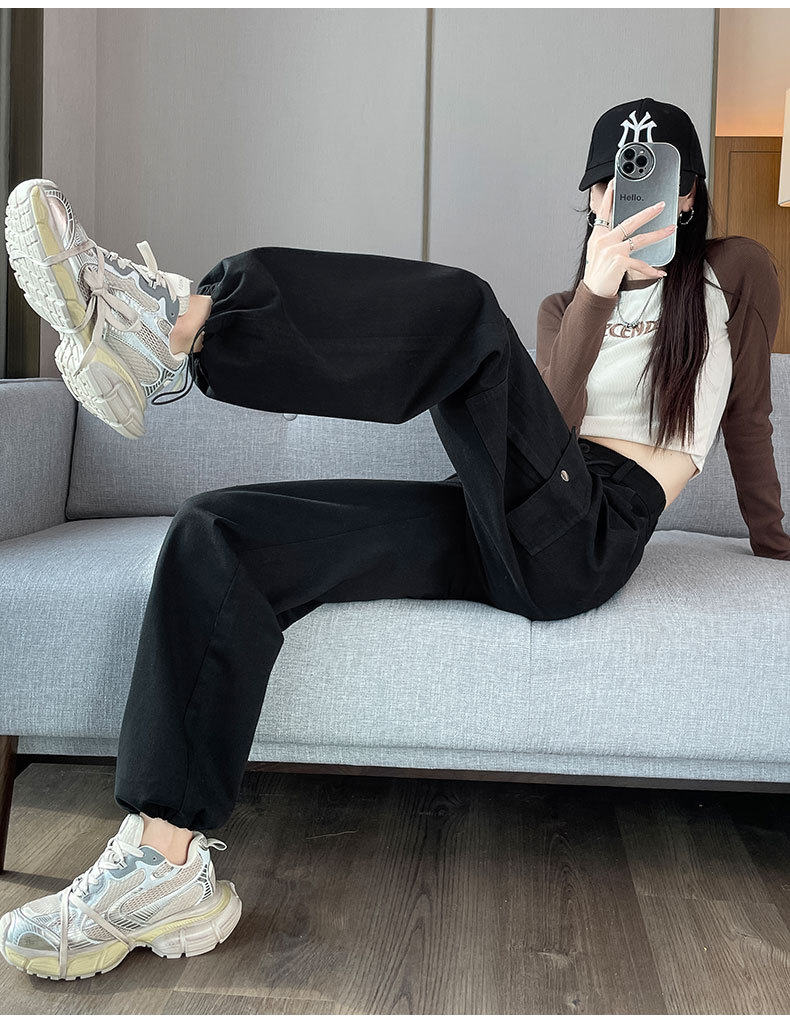 블랙 작업복 바지 여성용 2024년 신상 봄 가을 소형 사이즈 아메리칸 캐주얼 조거 등산 와이드 팬츠 E641