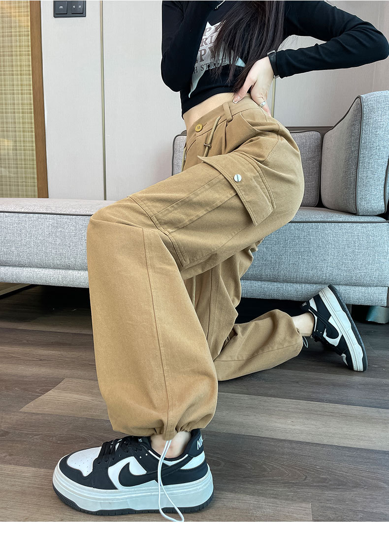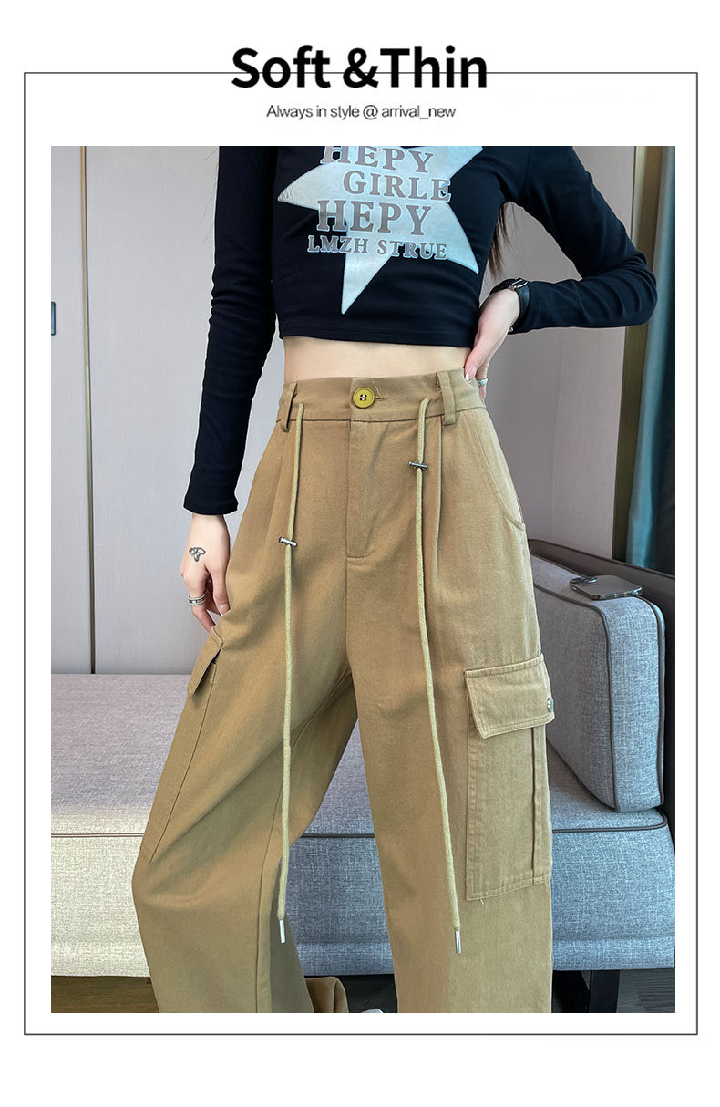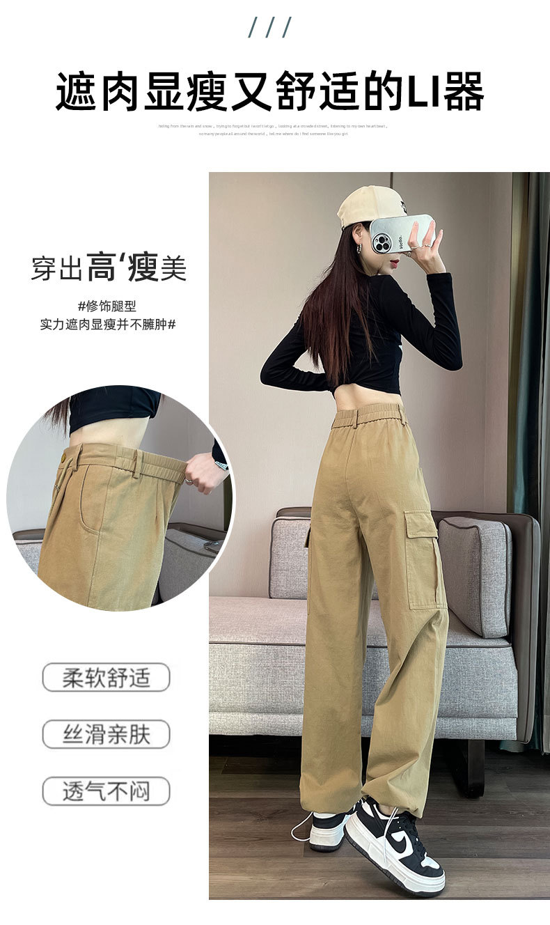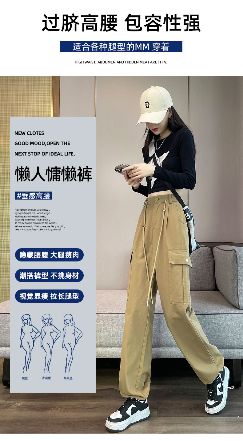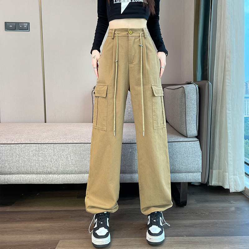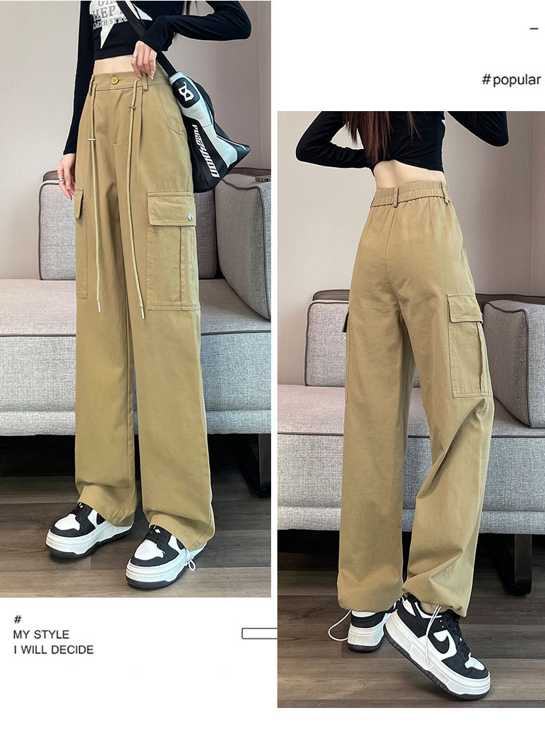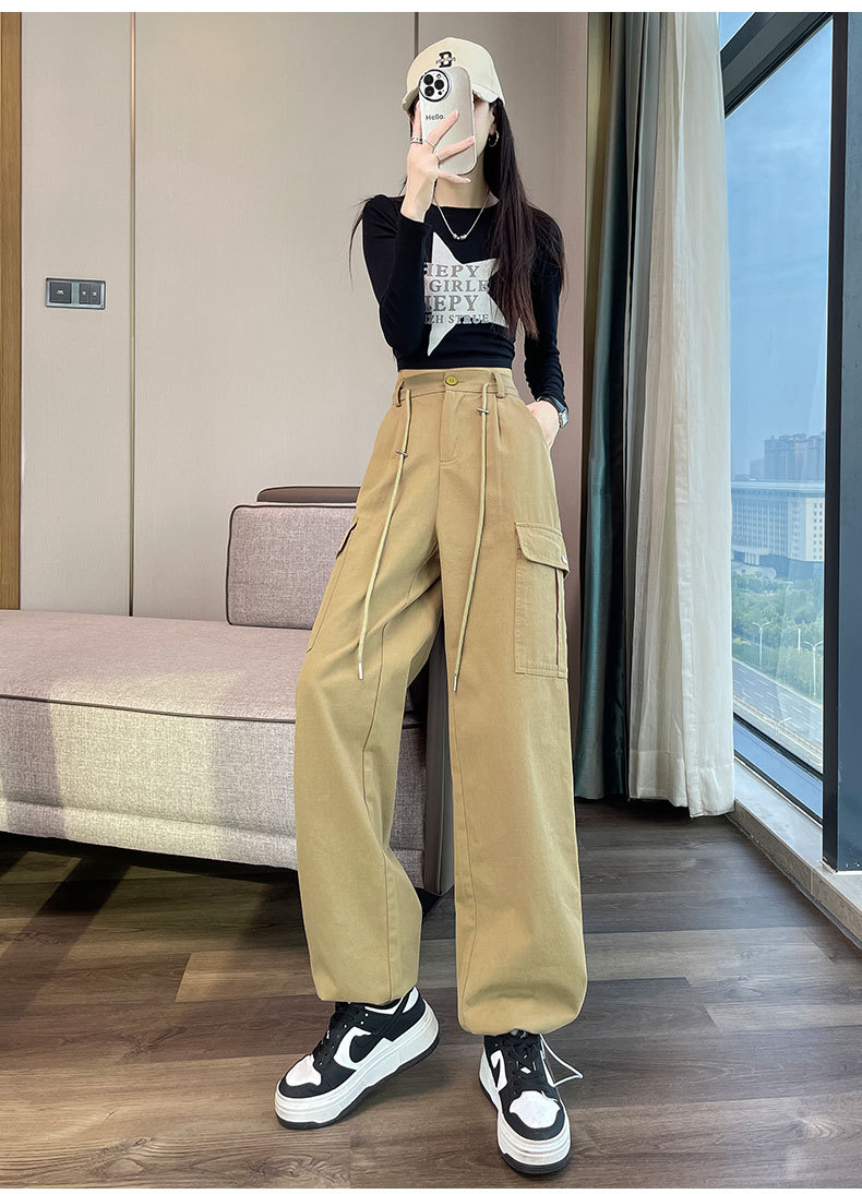 블랙 작업복 바지 여성용 2024년 신상 봄 가을 소형 사이즈 아메리칸 캐주얼 조거 등산 와이드 팬츠 E641