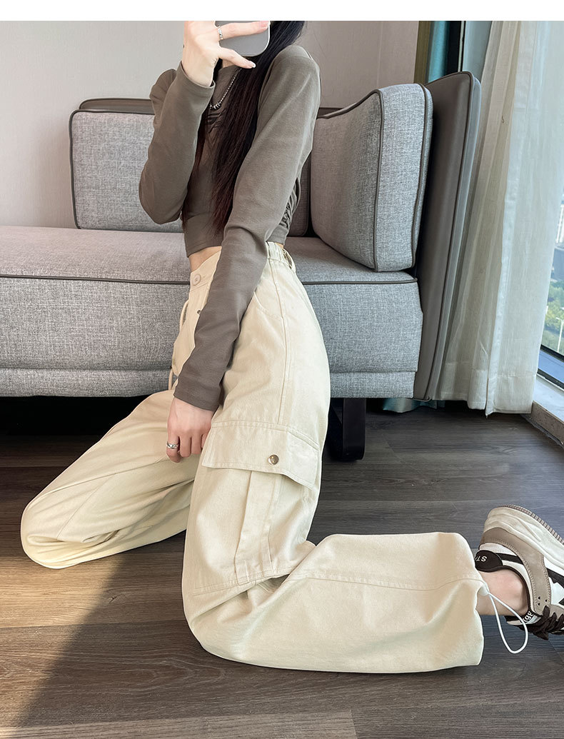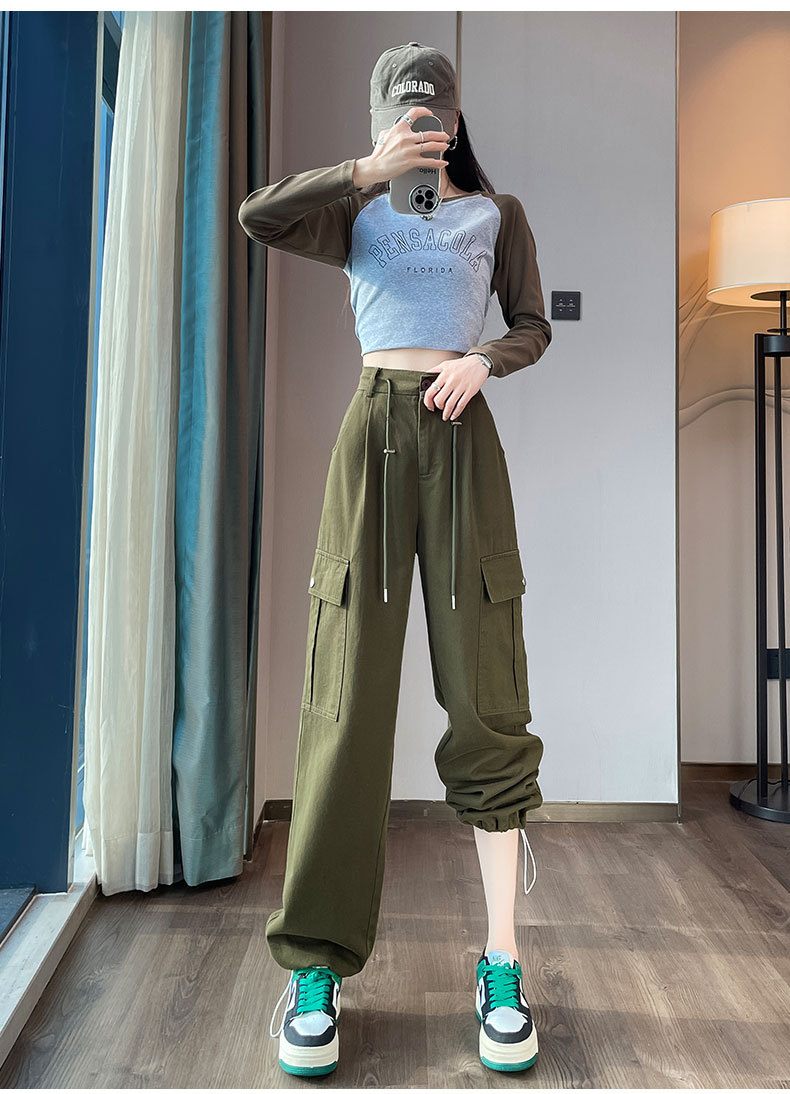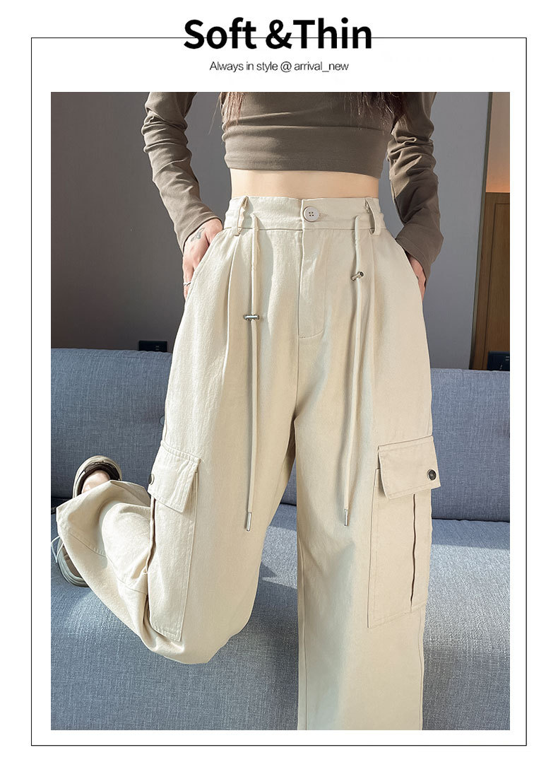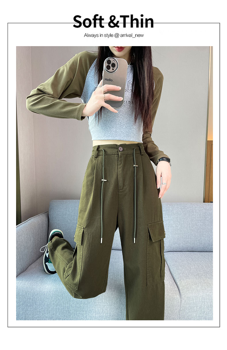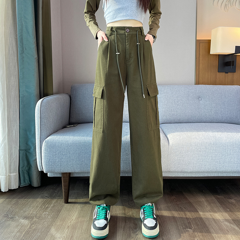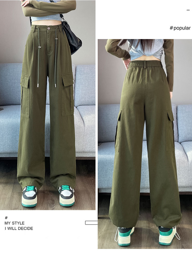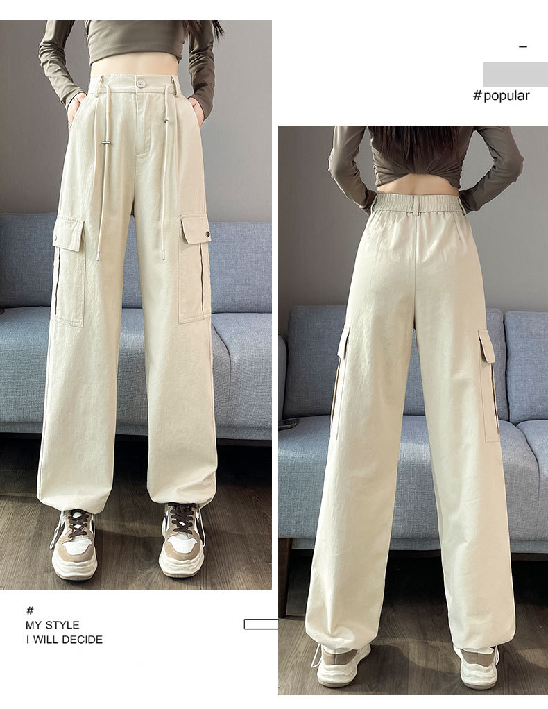블랙 작업복 바지 여성용 2024년 신상 봄 가을 소형 사이즈 아메리칸 캐주얼 조거 등산 와이드 팬츠 E641