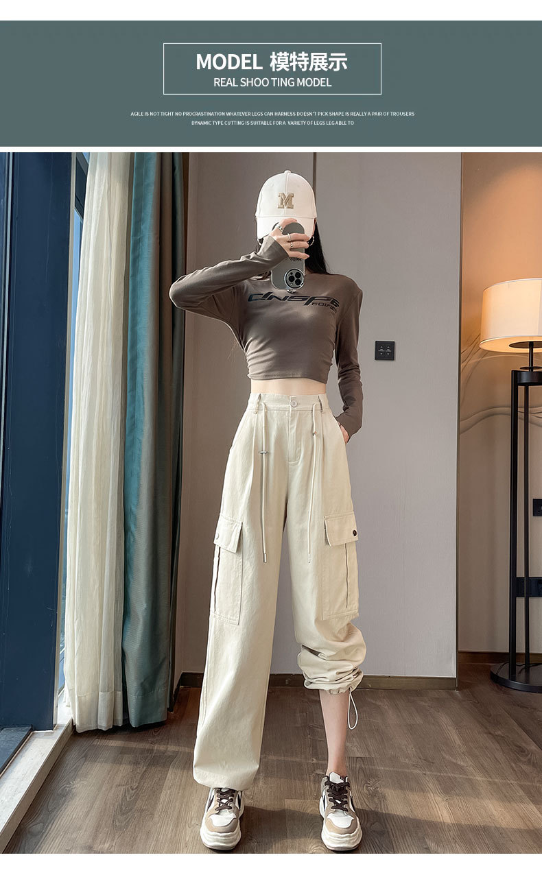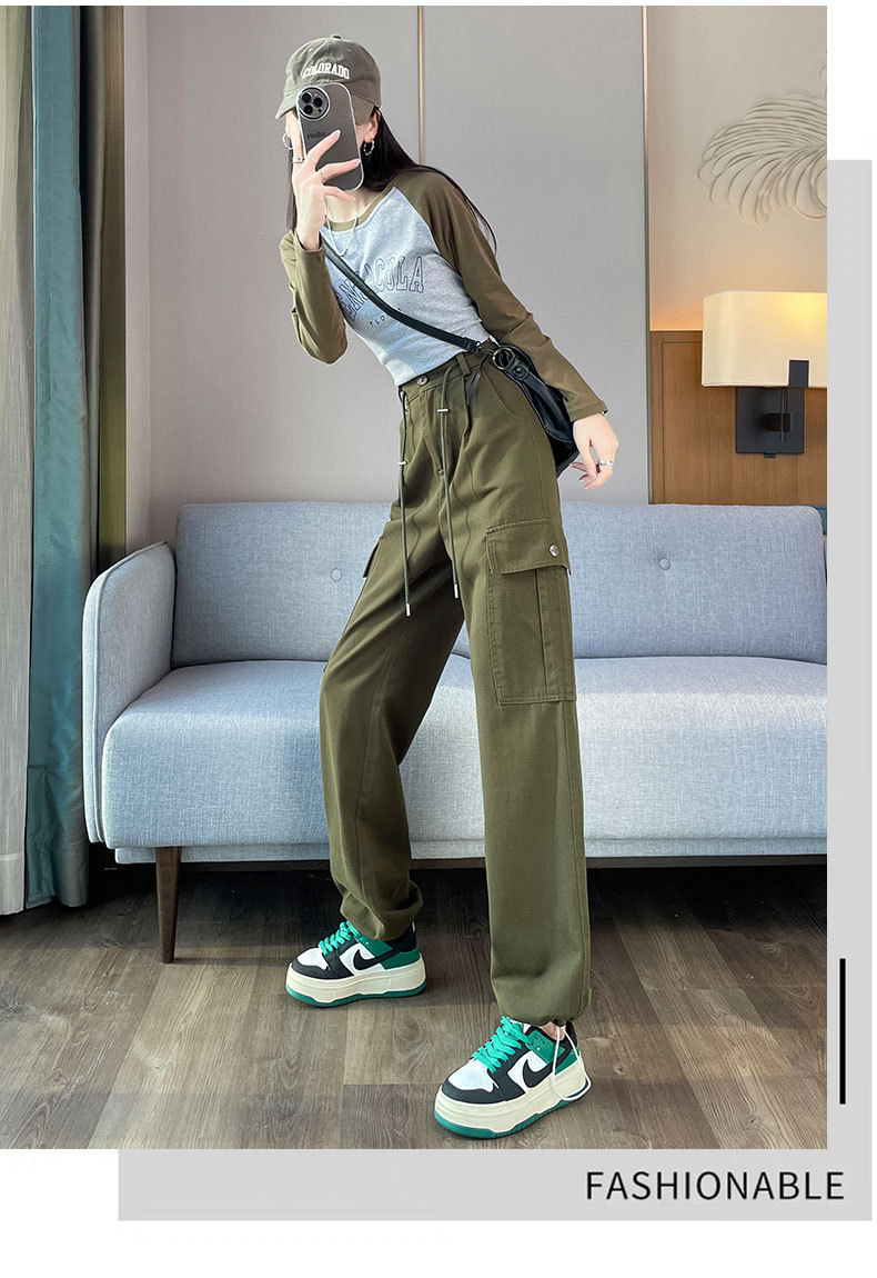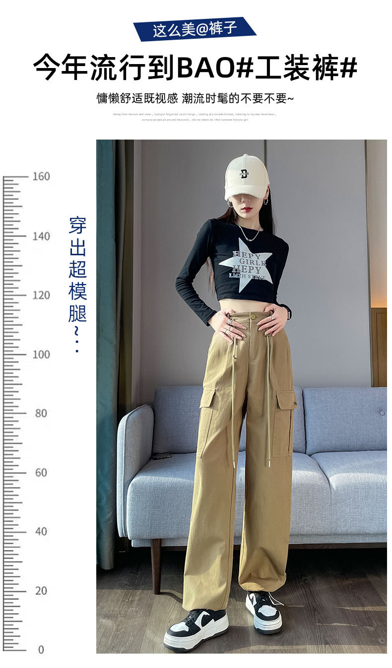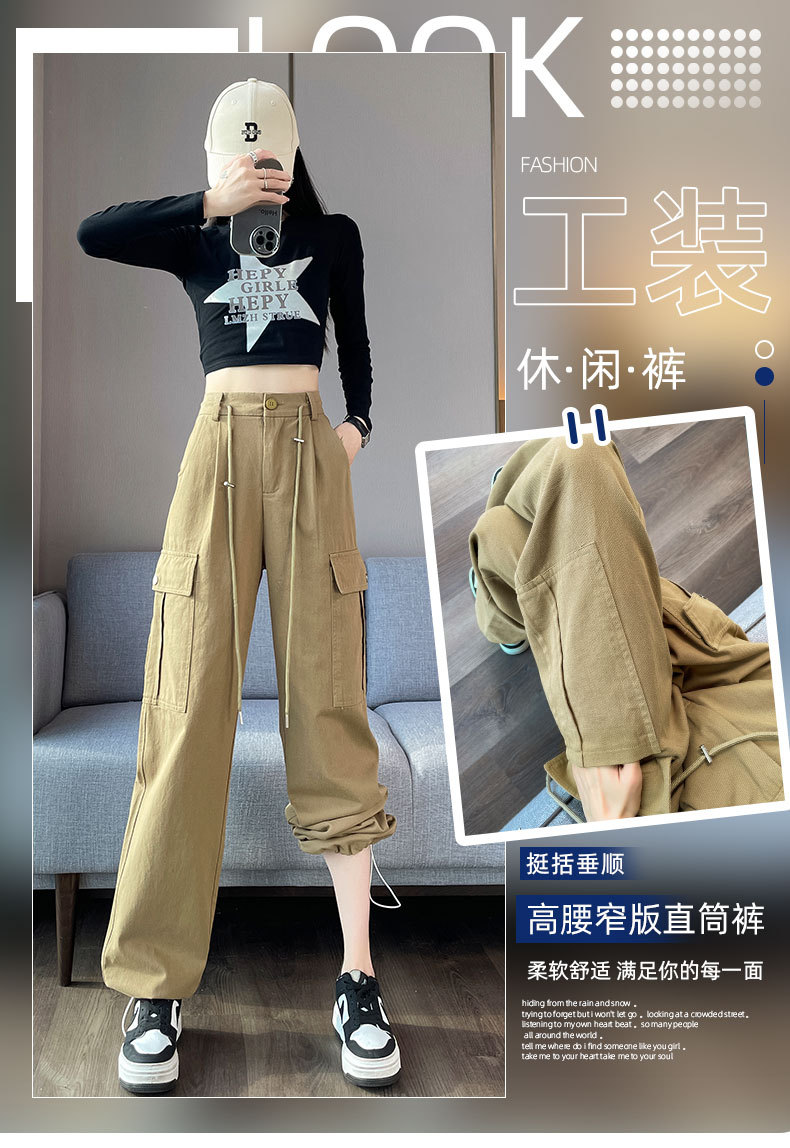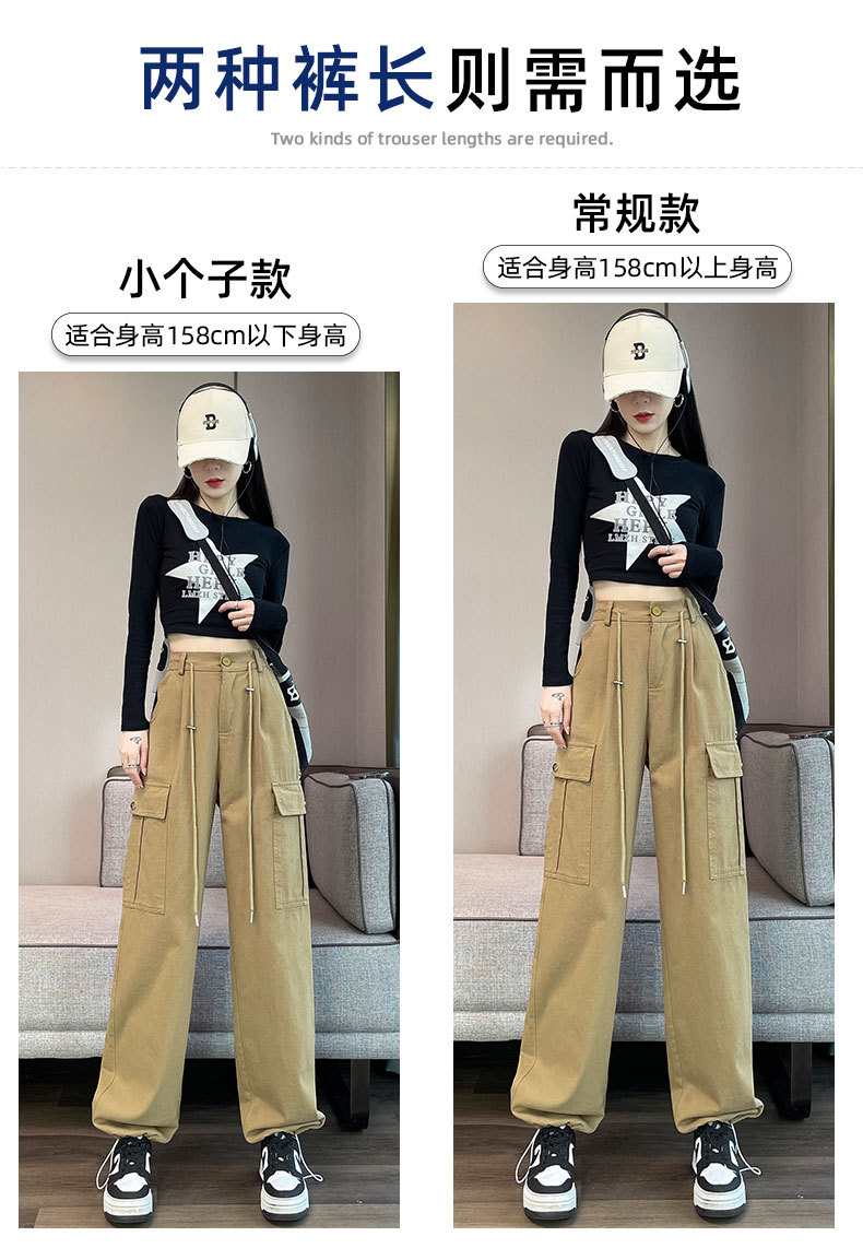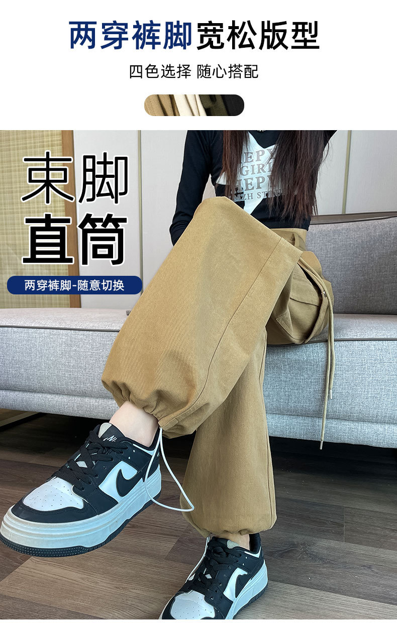 블랙 작업복 바지 여성용 2024년 신상 봄 가을 소형 사이즈 아메리칸 캐주얼 조거 등산 와이드 팬츠 E641스토어 가기