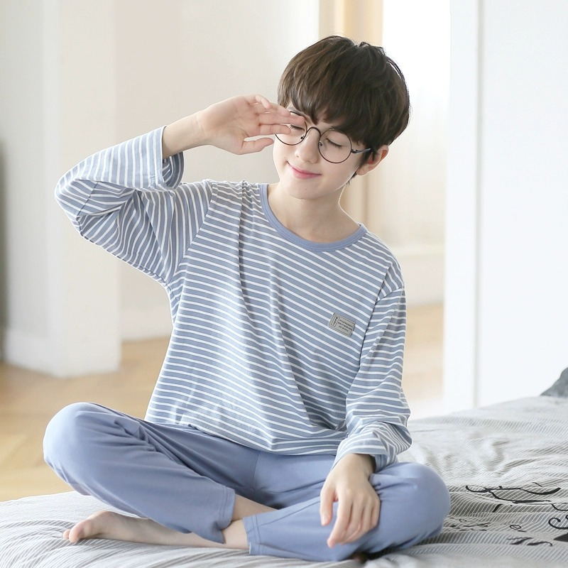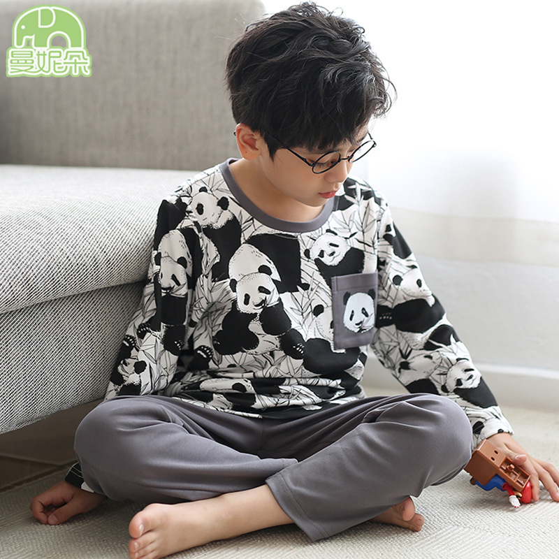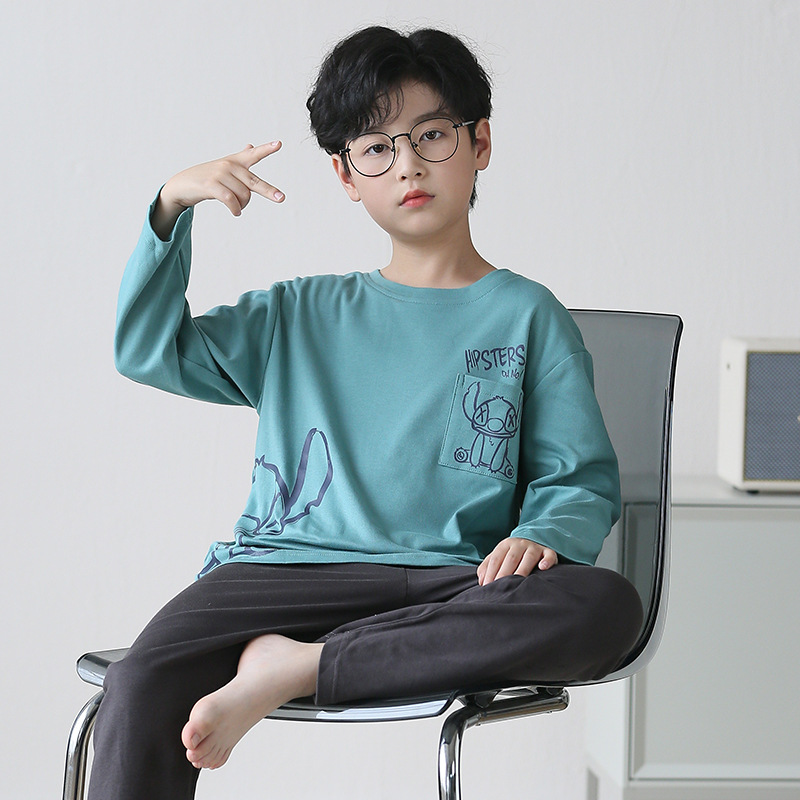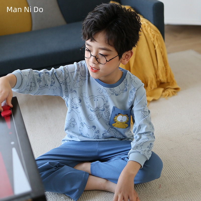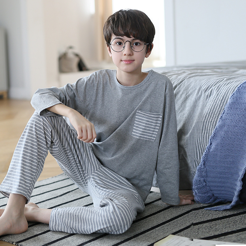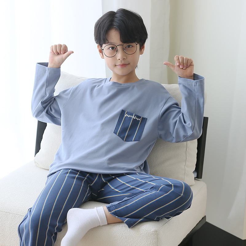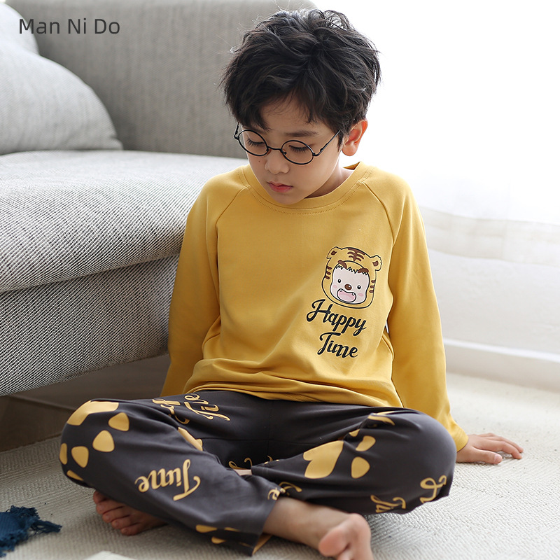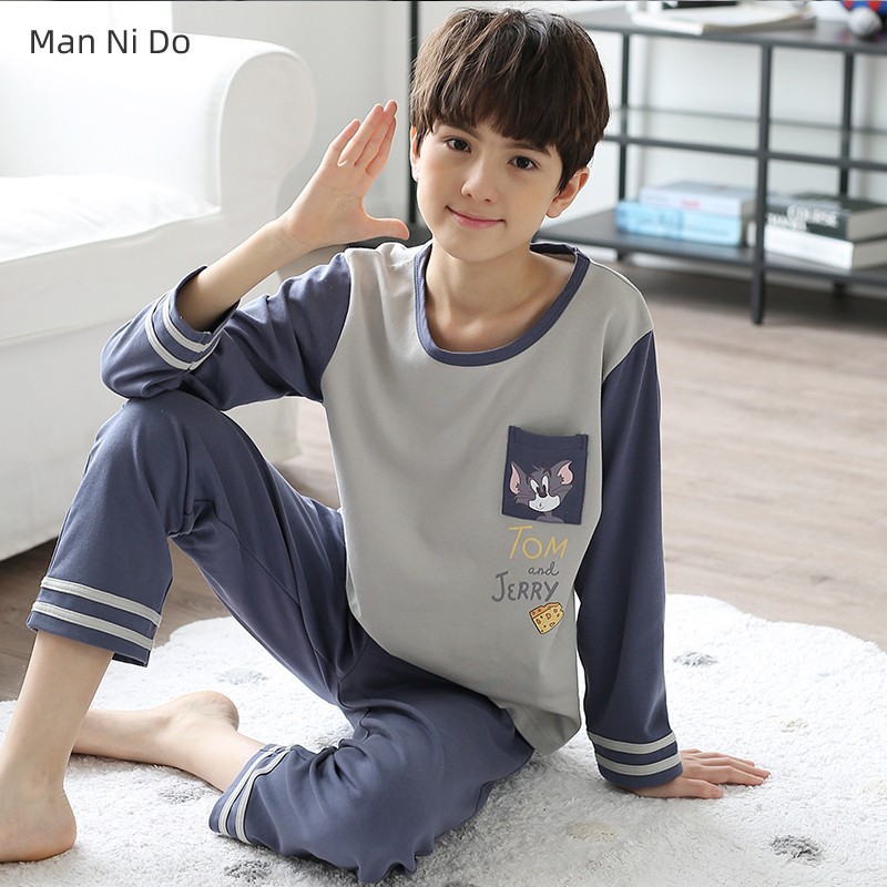 어린이 잠옷 소년 봄과 가을의 새로운 순면 청소년 긴팔 면화 세트 가을 소년의 나이 많은 어린이 가정스토어 가기