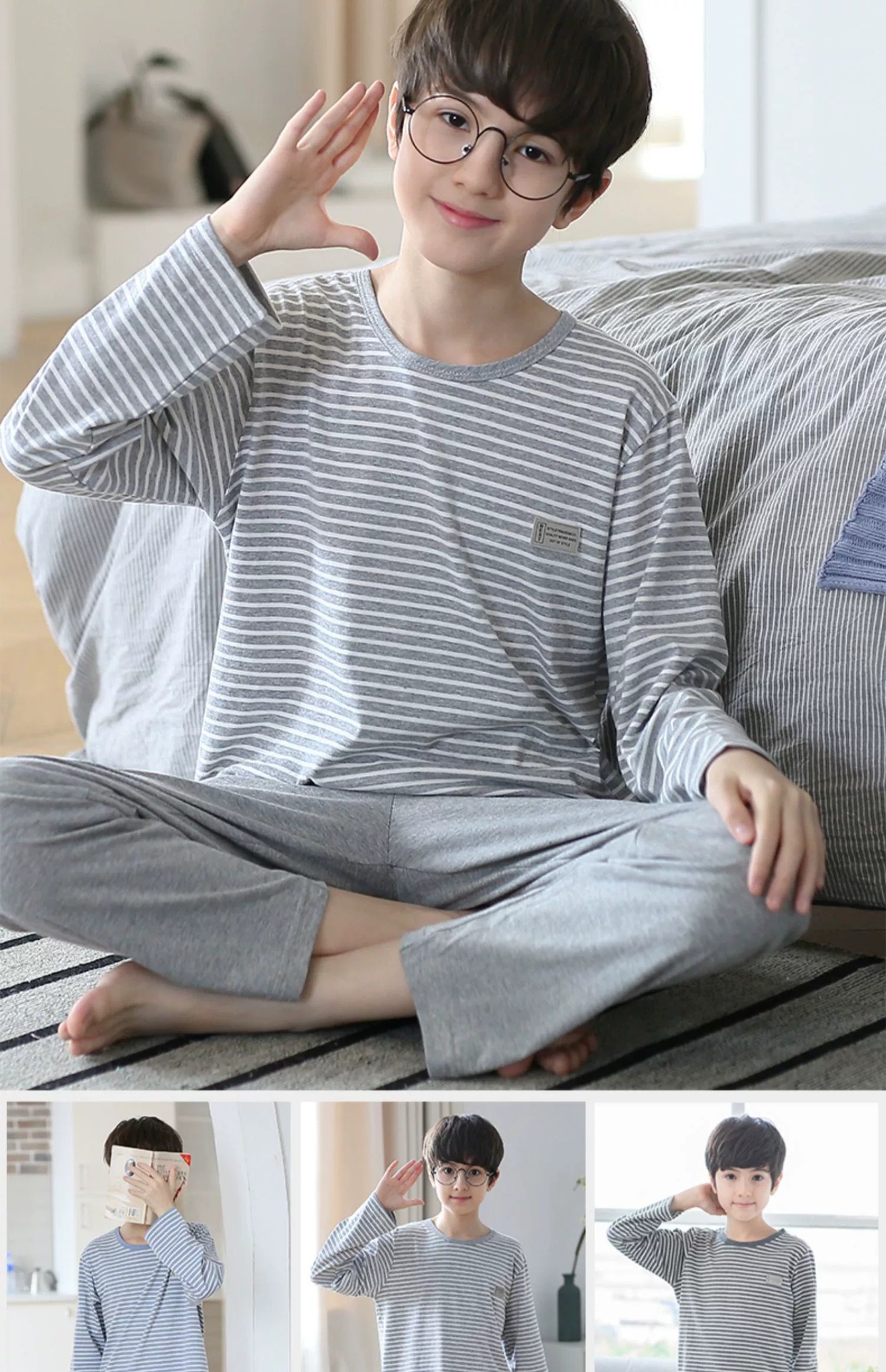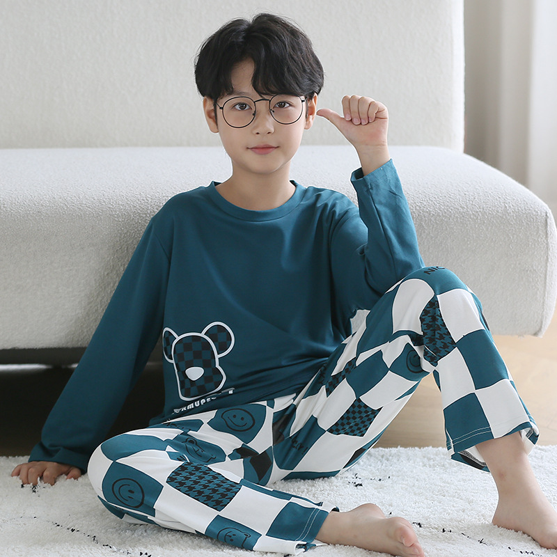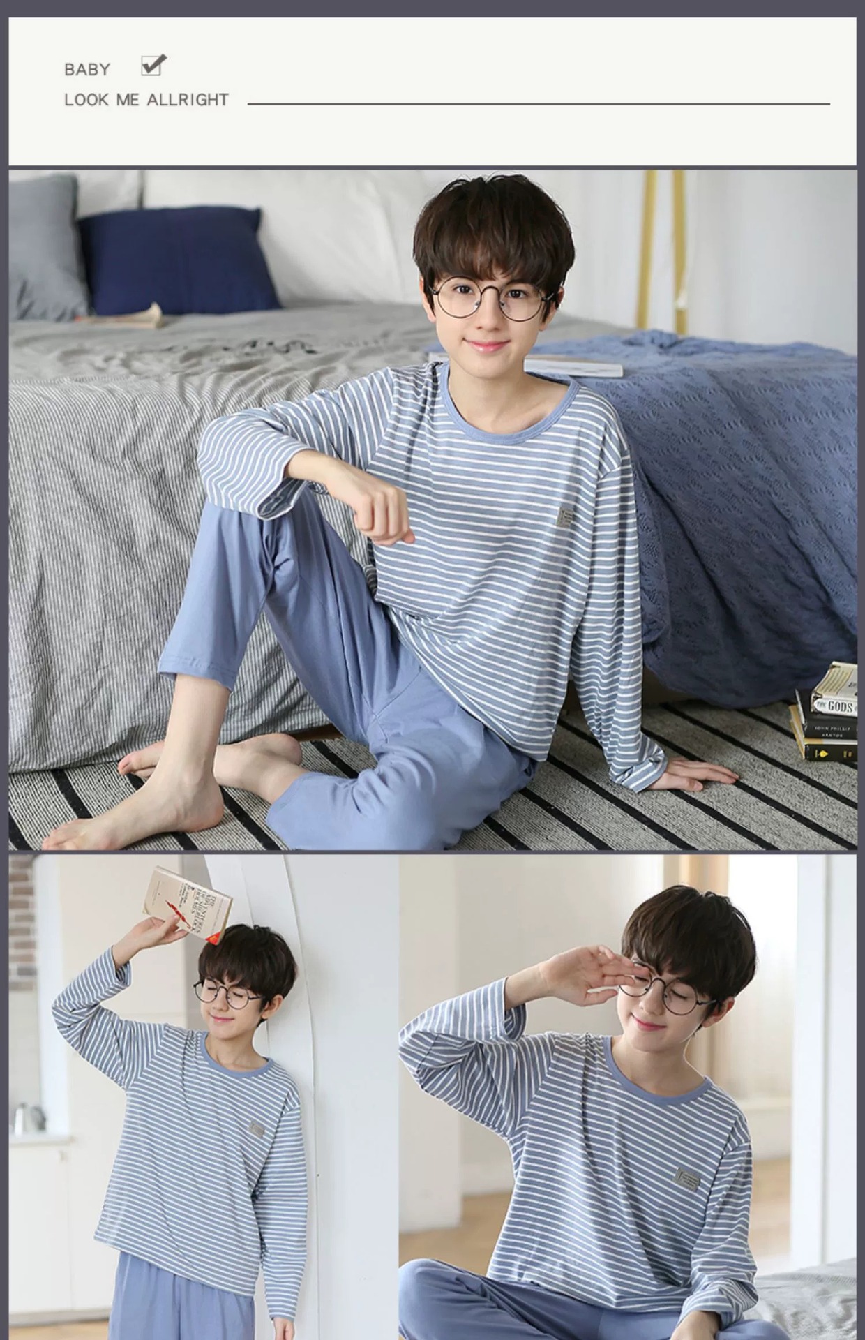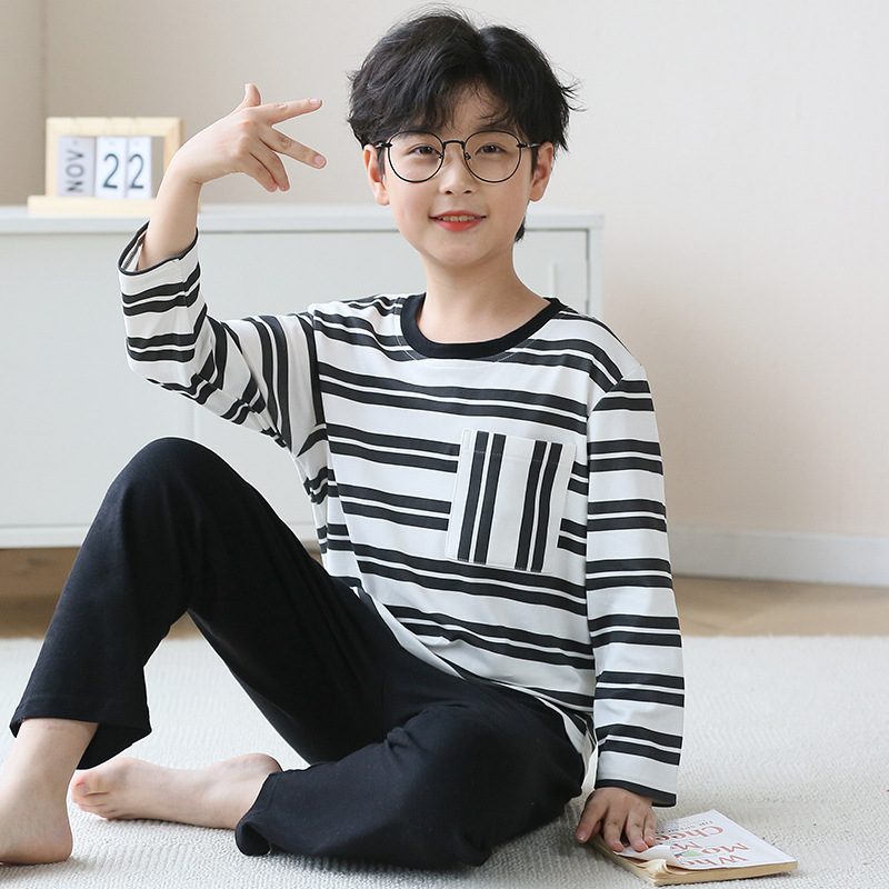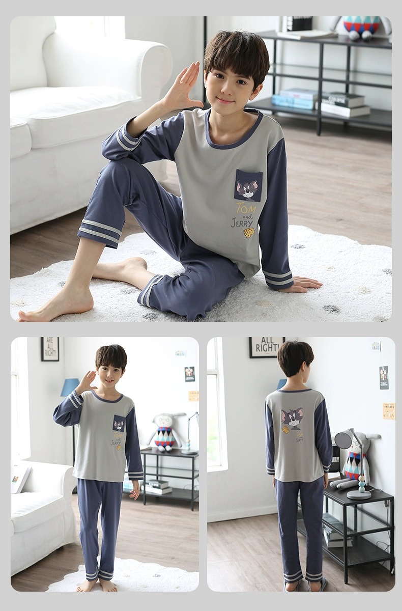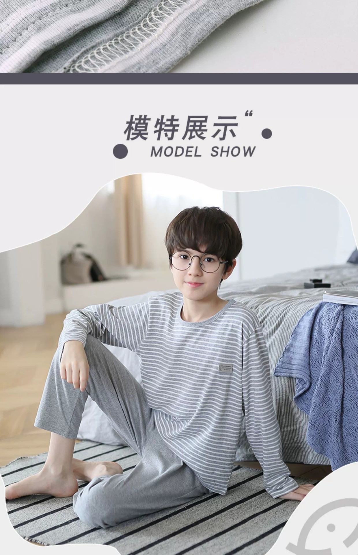 어린이 잠옷 소년 봄과 가을의 새로운 순면 청소년 긴팔 면화 세트 가을 소년의 나이 많은 어린이 가정스토어 가기