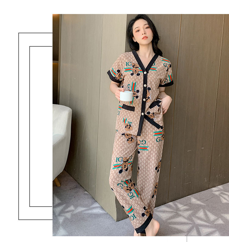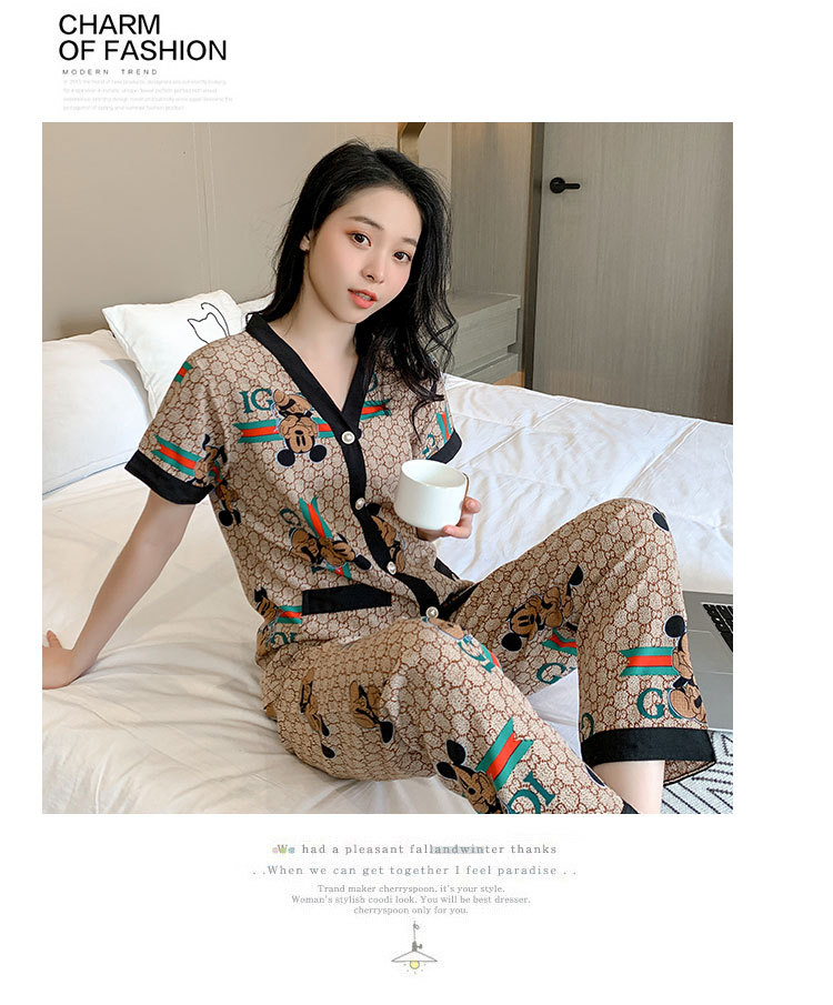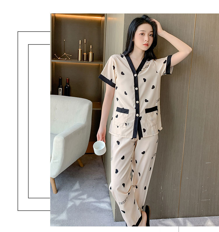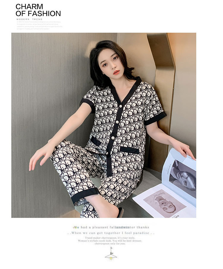 잠옷 여성용 카디건 V 넥 얇은 반팔 바지 벽면 플러스 사이즈 홈웨어 세트