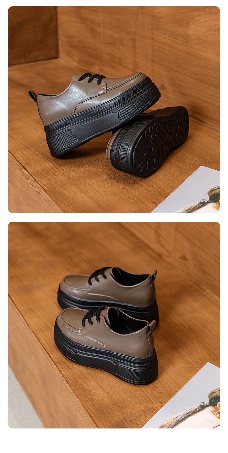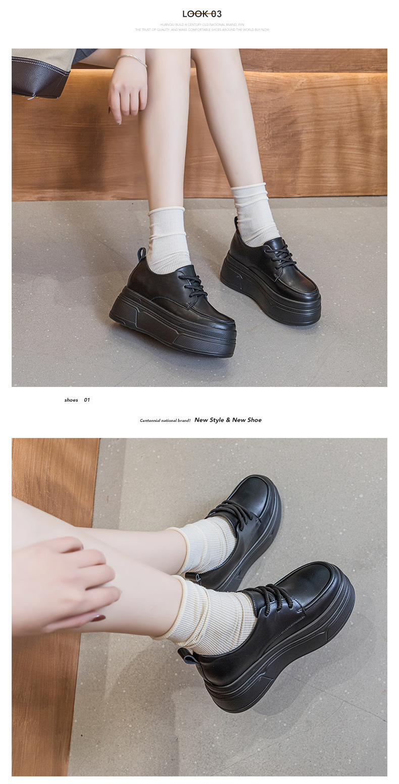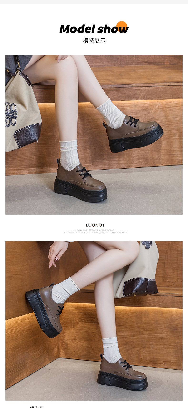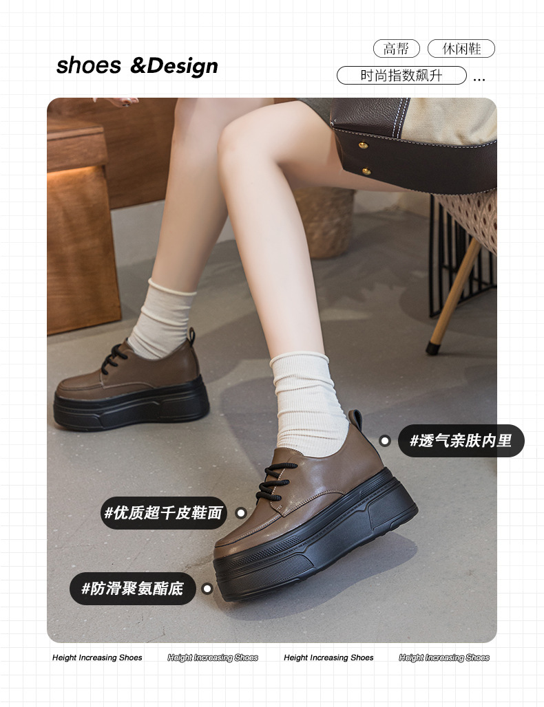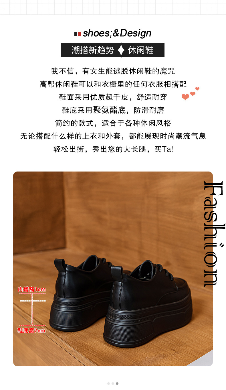 2024 봄 새로운 캐주얼 운동화 여성 한국 스타일 여성 패션 라운드 토 두꺼운 바닥 올 매치 숨겨진 높이 증가 싱글 레이어 신발 패션스토어 가기