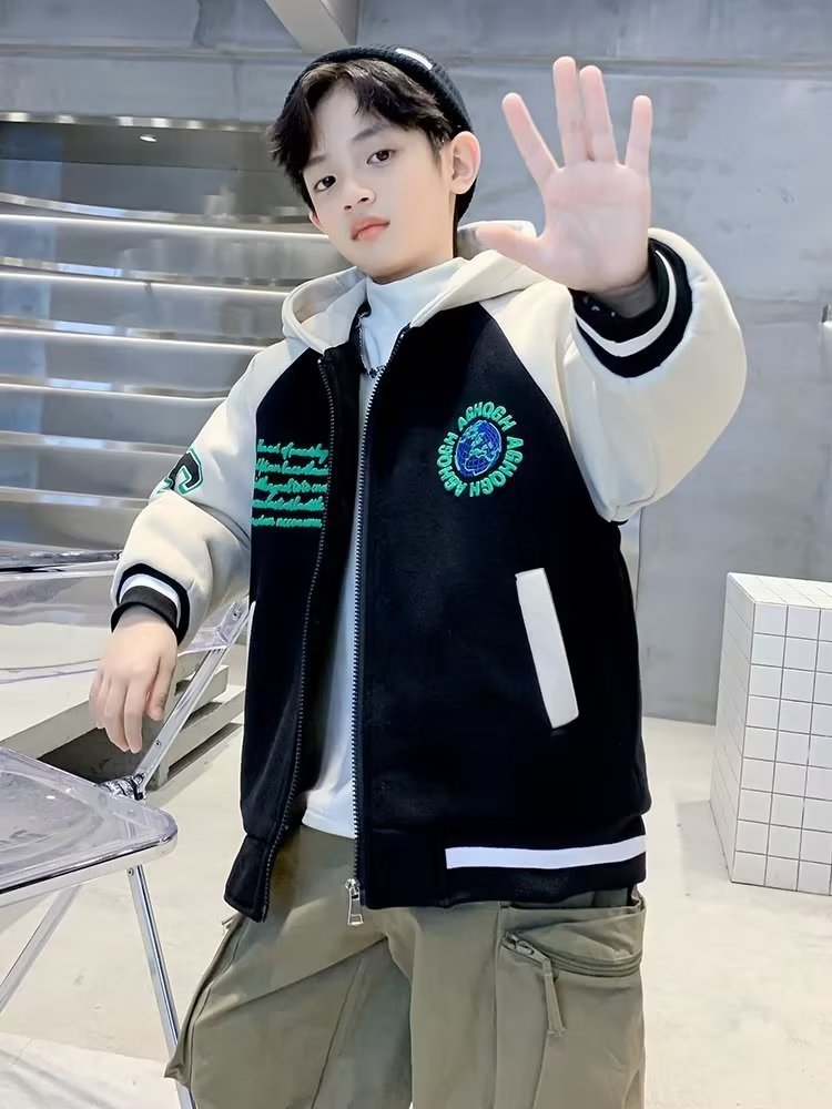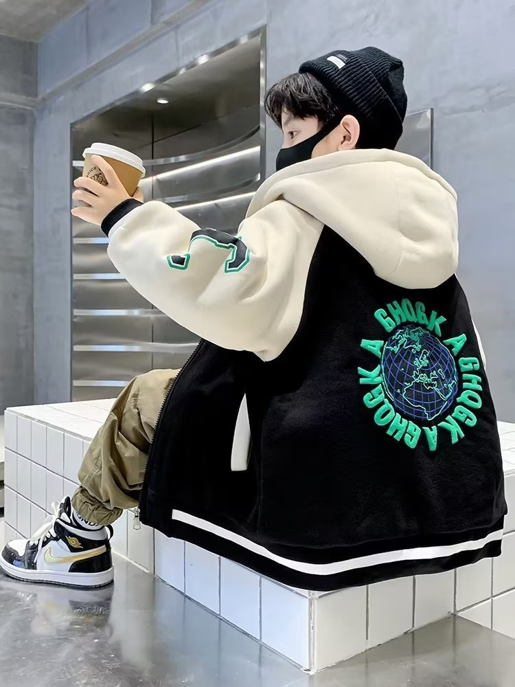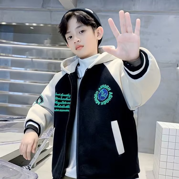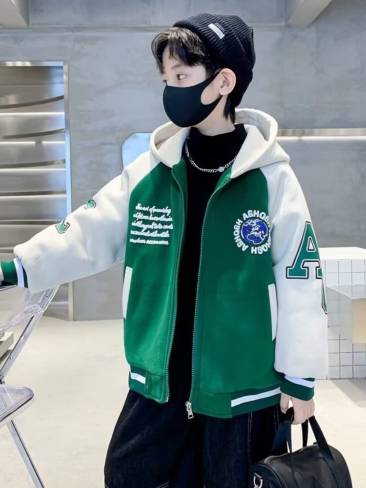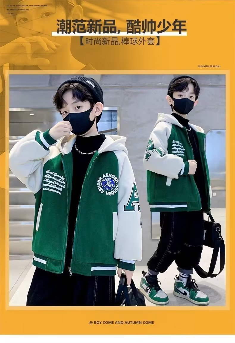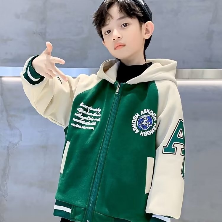 아동복 소년 봄 재킷 봄, 가을 2024 새로운 스타일 중대형 어린이 소년 봄 원피스 벨벳 야구 유니폼 아동복스토어 가기